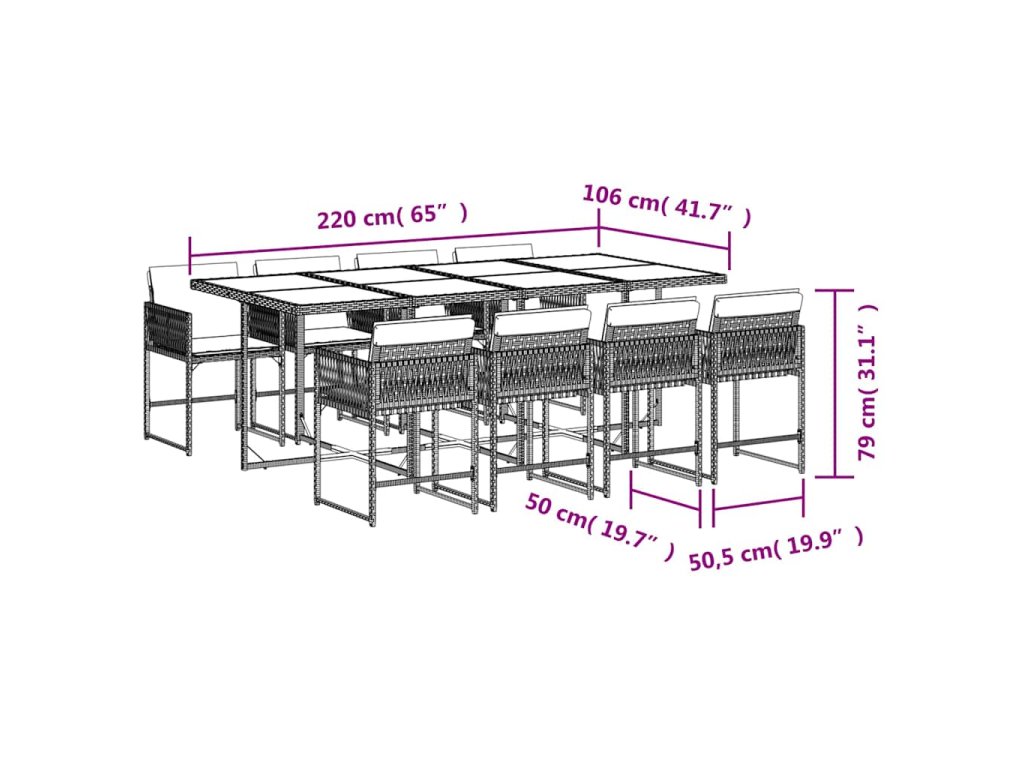9dílný zahradní jídelní set s poduškami šedý polyratan 3211460