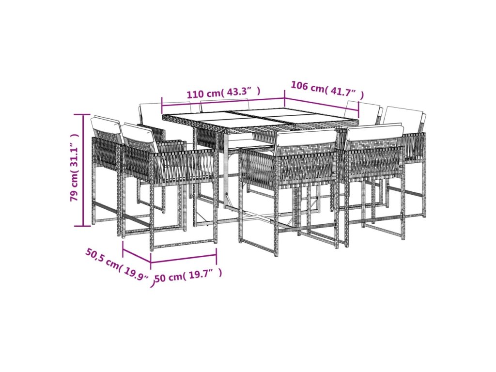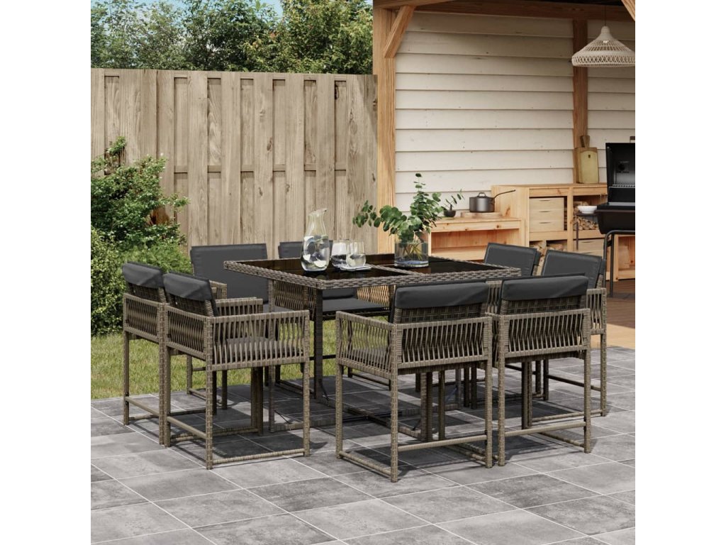9dílný zahradní jídelní set s poduškami šedý polyratan 3211556