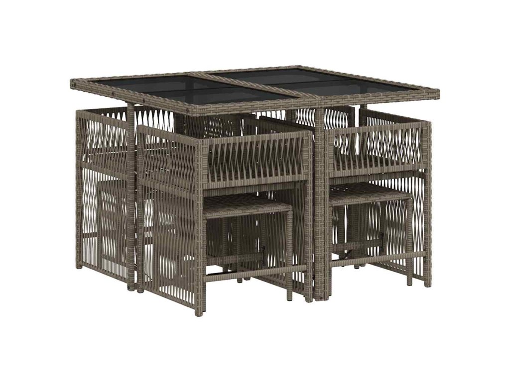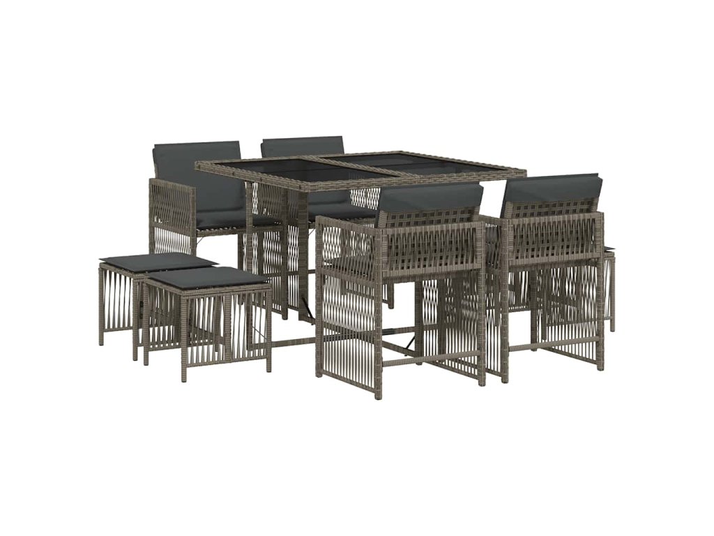 9dílný zahradní jídelní set s poduškami šedý polyratan 3211676