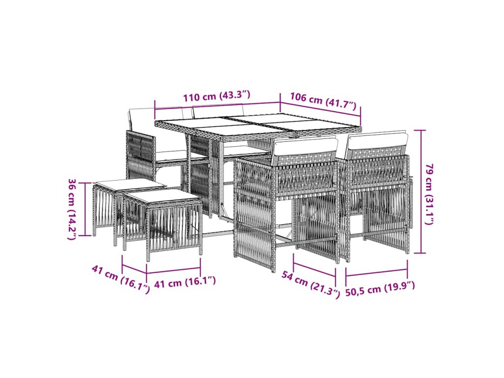 Tento zahradní jídelní set je skvělou volbou pro stolování pod širým nebem nebo jen tak pro odpočívání na zahradě, dvorku či terase.