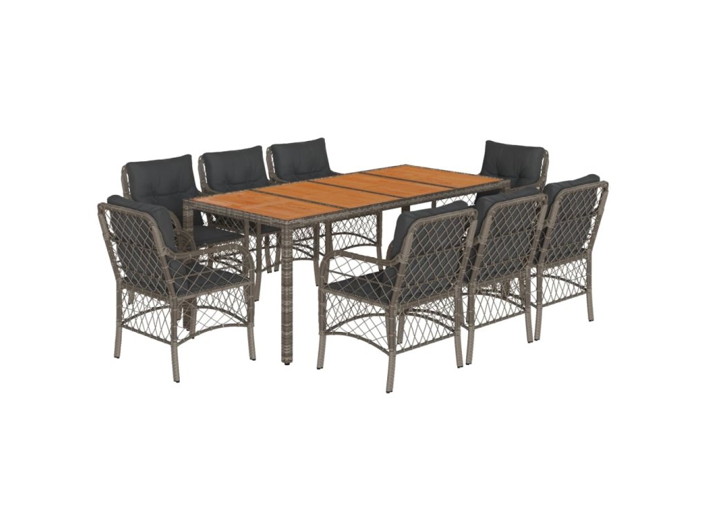 9dílný zahradní jídelní set s poduškami šedý polyratan 3212053