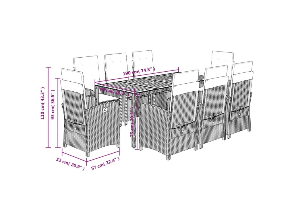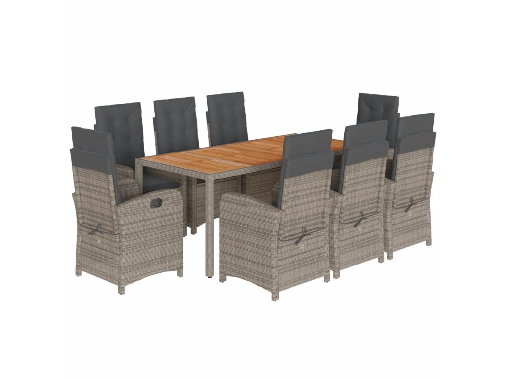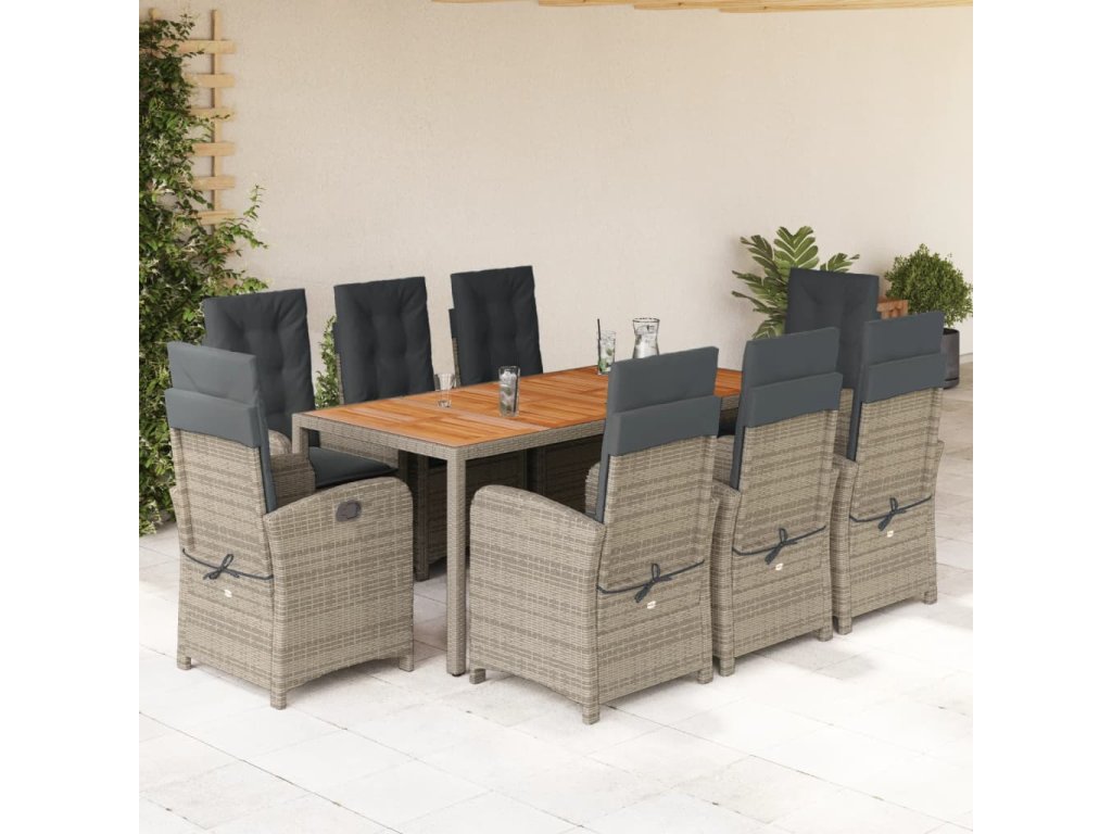 9dílný zahradní jídelní set s poduškami šedý polyratan 3212246