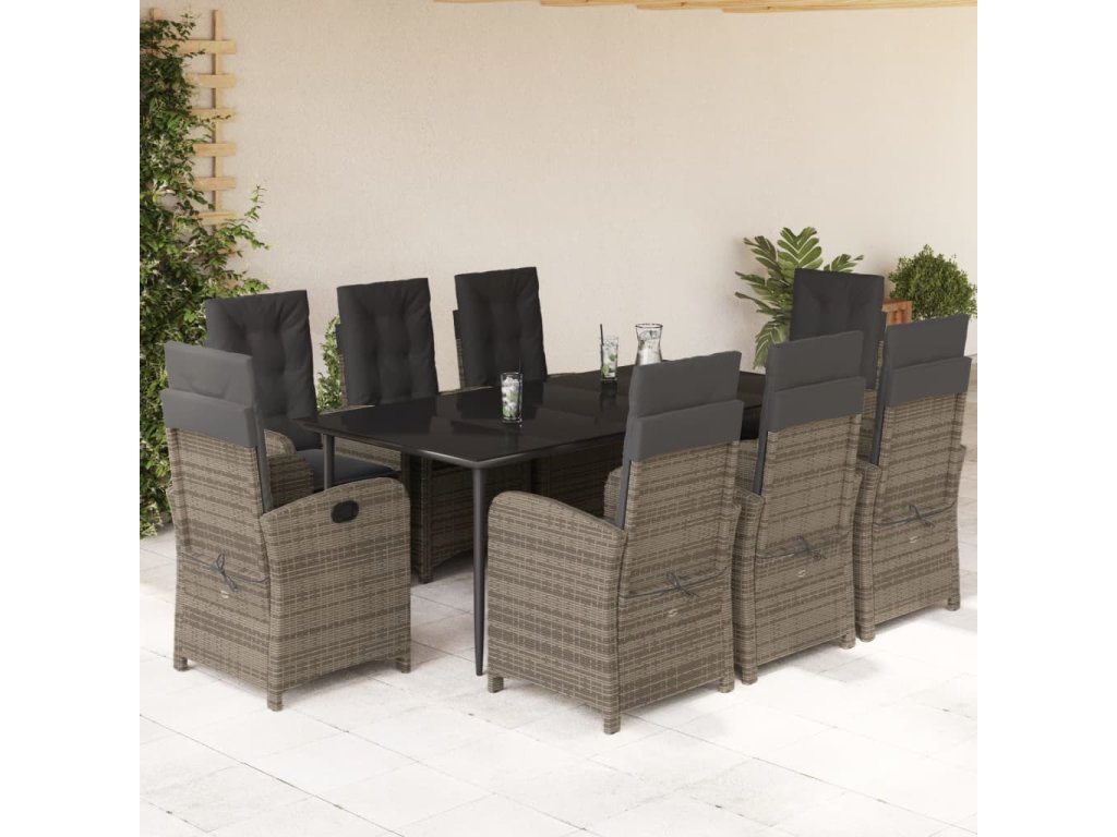 9dílný zahradní jídelní set s poduškami šedý polyratan 3212358