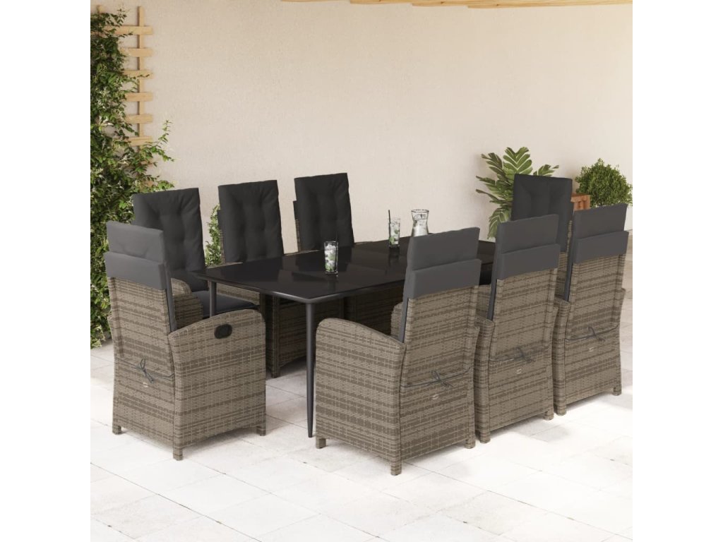 9dílný zahradní jídelní set s poduškami šedý polyratan 3212359
