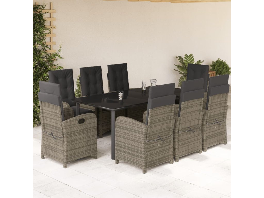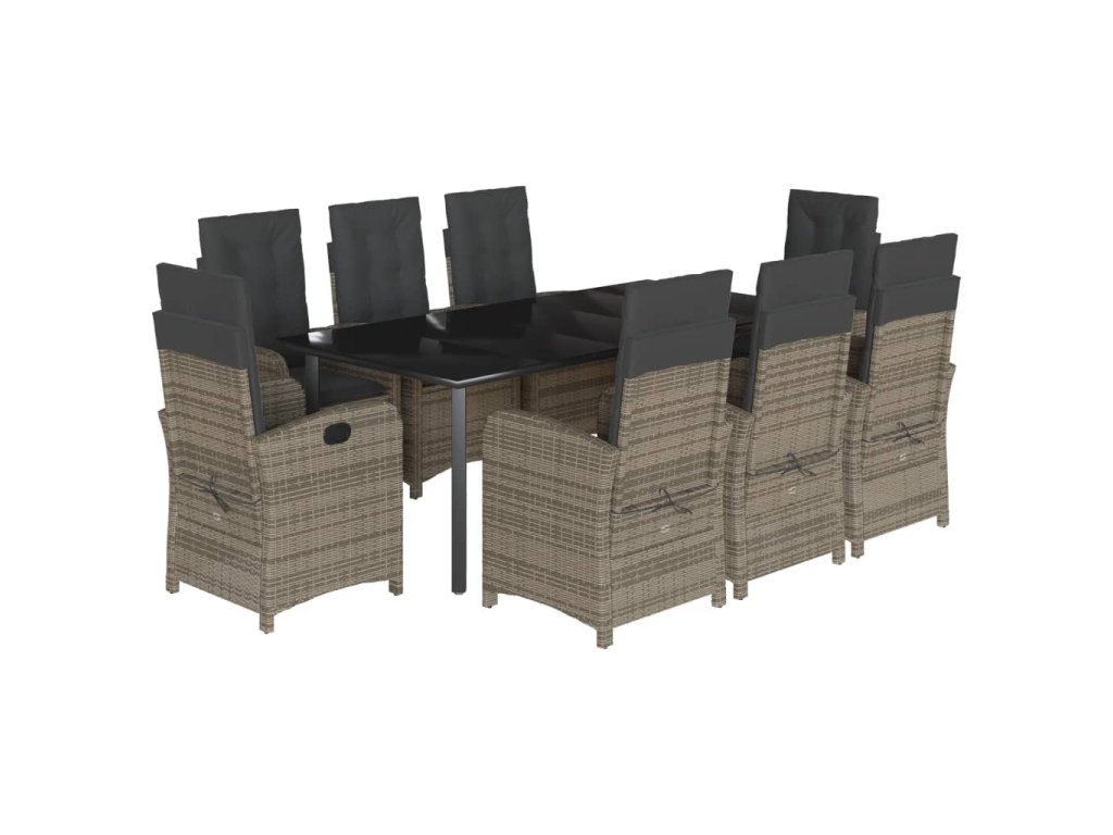 9dílný zahradní jídelní set s poduškami šedý polyratan 3212368
