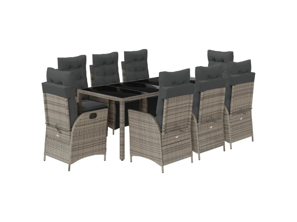 9dílný zahradní jídelní set s poduškami šedý polyratan 3213331