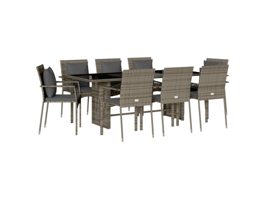 9dílný zahradní jídelní set s poduškami šedý polyratan 3213493