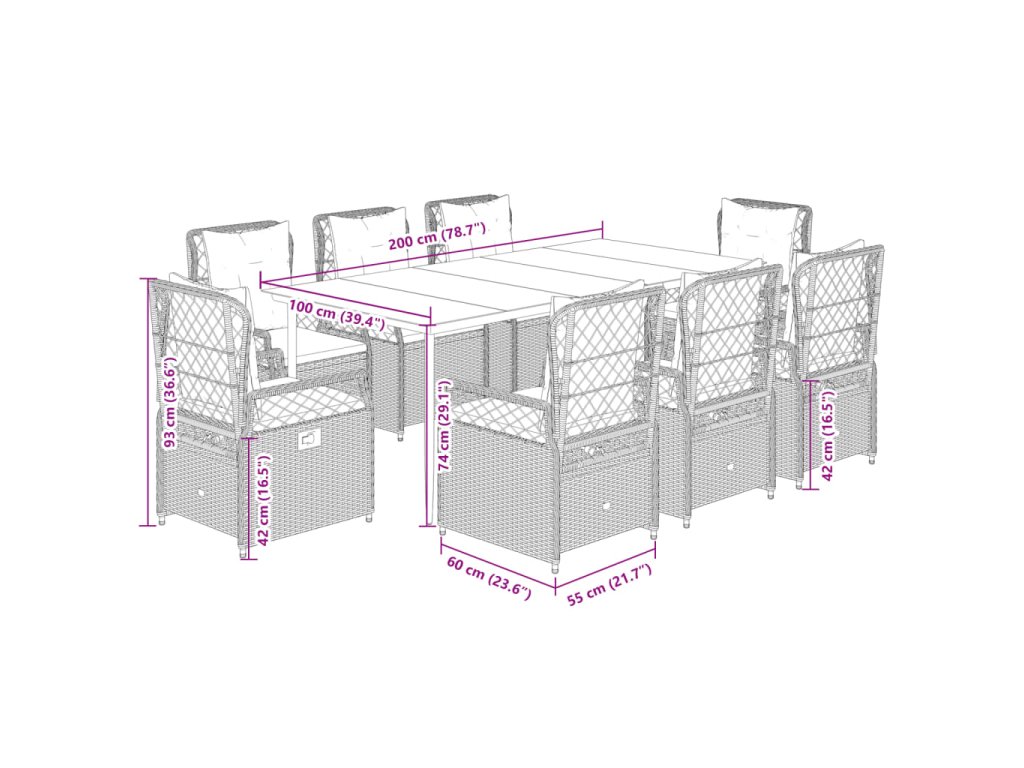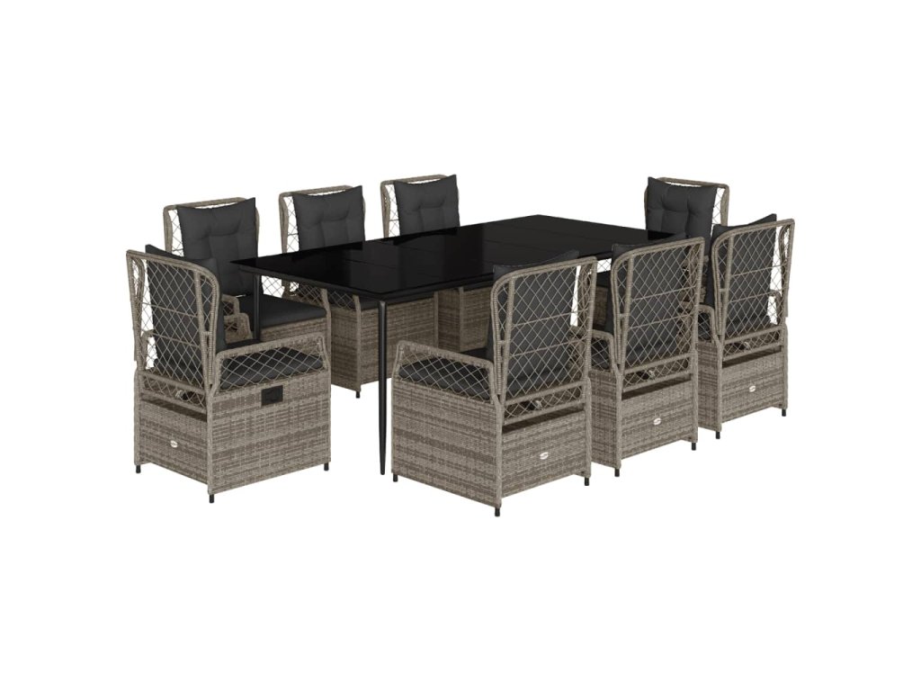 9dílný zahradní jídelní set s poduškami šedý polyratan 3262991