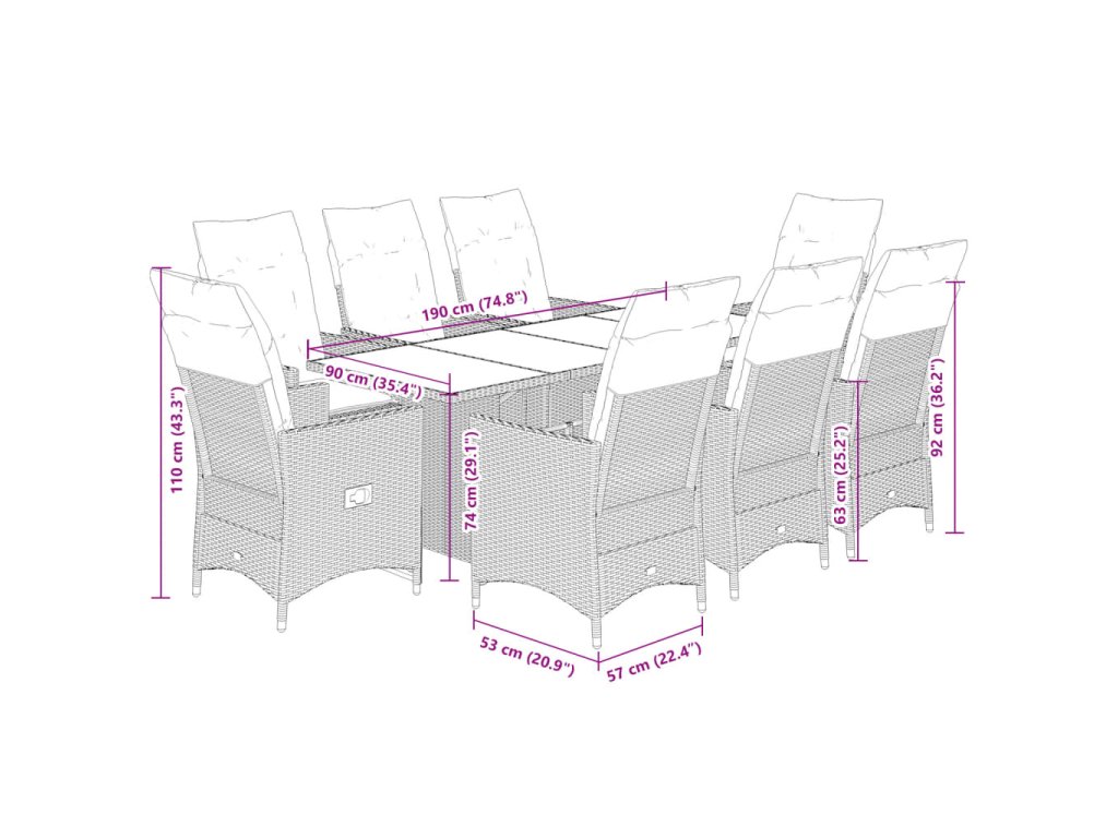 9dílný zahradní jídelní set s poduškami šedý polyratan 3276734