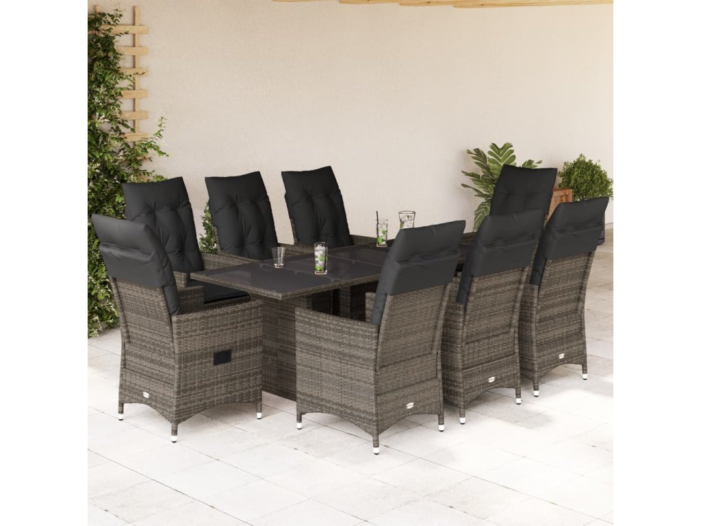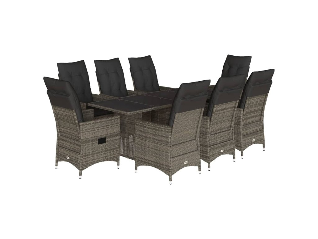 9dílný zahradní jídelní set s poduškami šedý polyratan 3276745