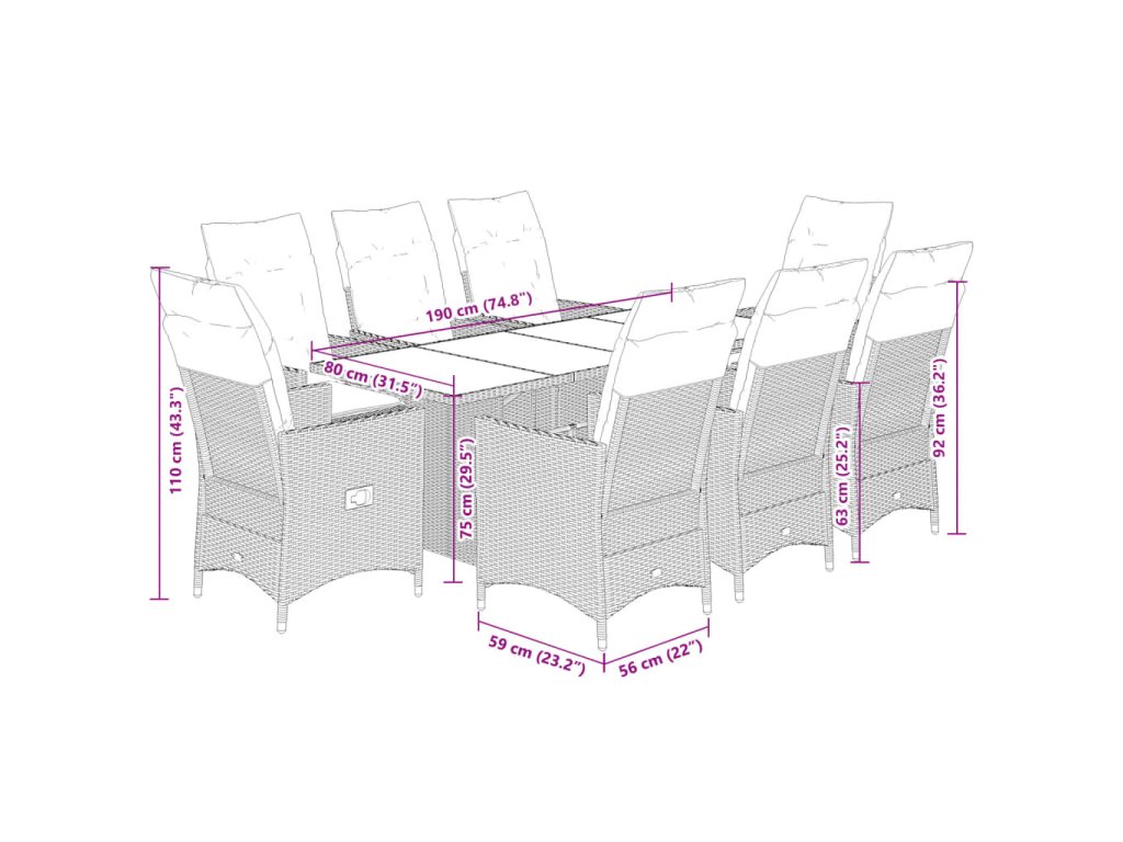 - Pohodlné sezení: Tento venkovní nábytkový set se silně polstrovanými poduškami a polštáři nabízí pohodlné sezení.