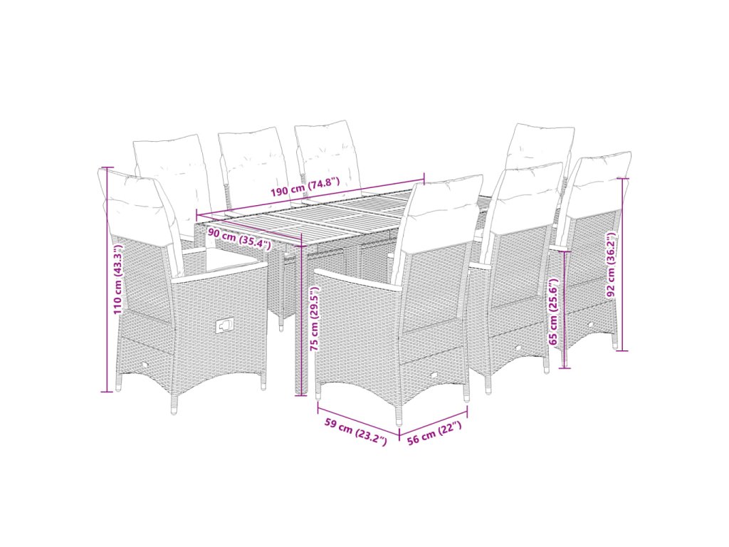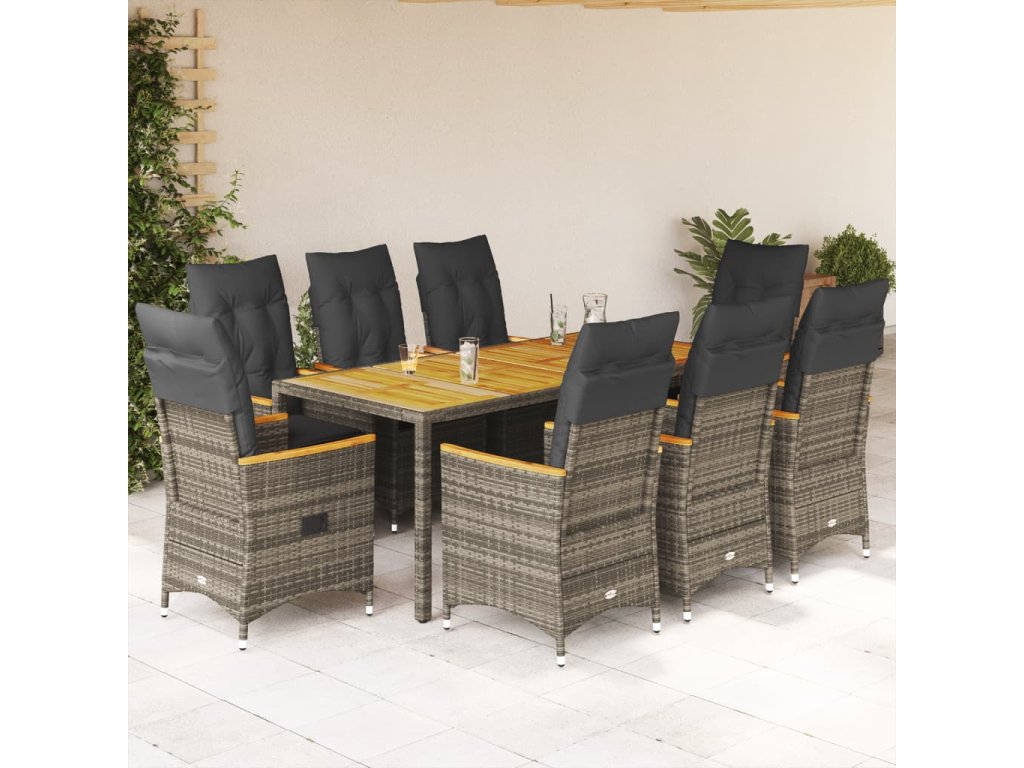 9dílný zahradní jídelní set s poduškami šedý polyratan 3276850