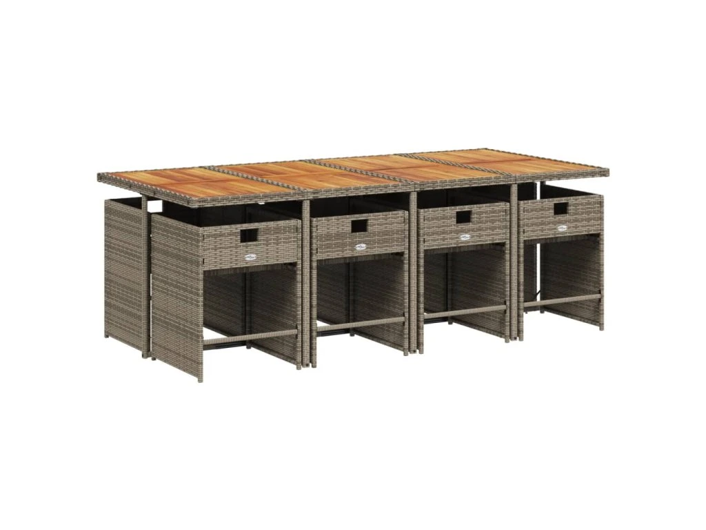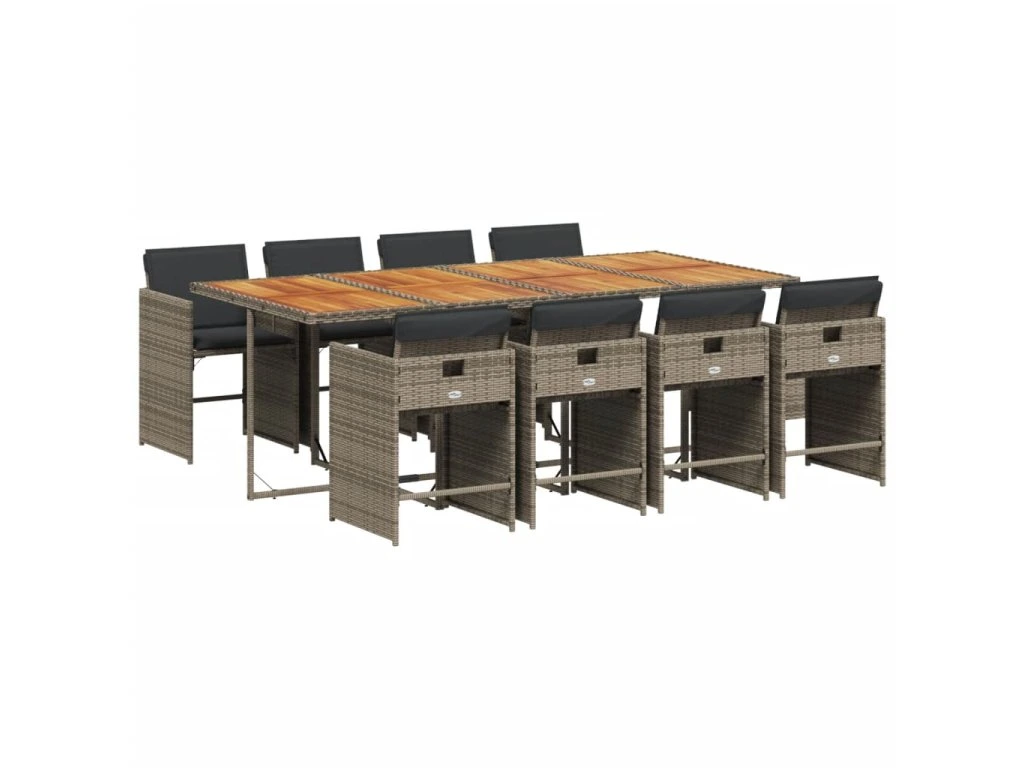 9dílný zahradní jídelní set s poduškami šedý polyratan 3277873