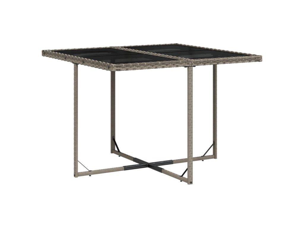 - Stabilní a snadno čistitelná stolní deska: Tento zahradní stůl má desku z tvrzeného skla, která je stabilní, odolná a snadno se čistí vlhkým hadříkem.