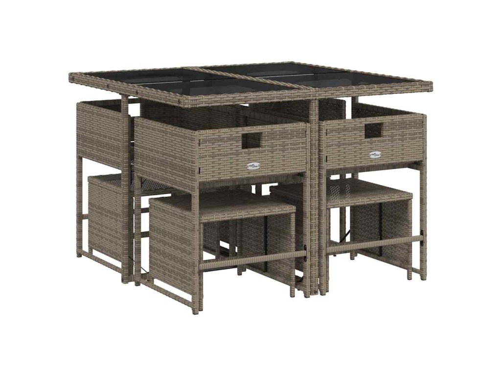 9dílný zahradní jídelní set s poduškami šedý polyratan 3278083