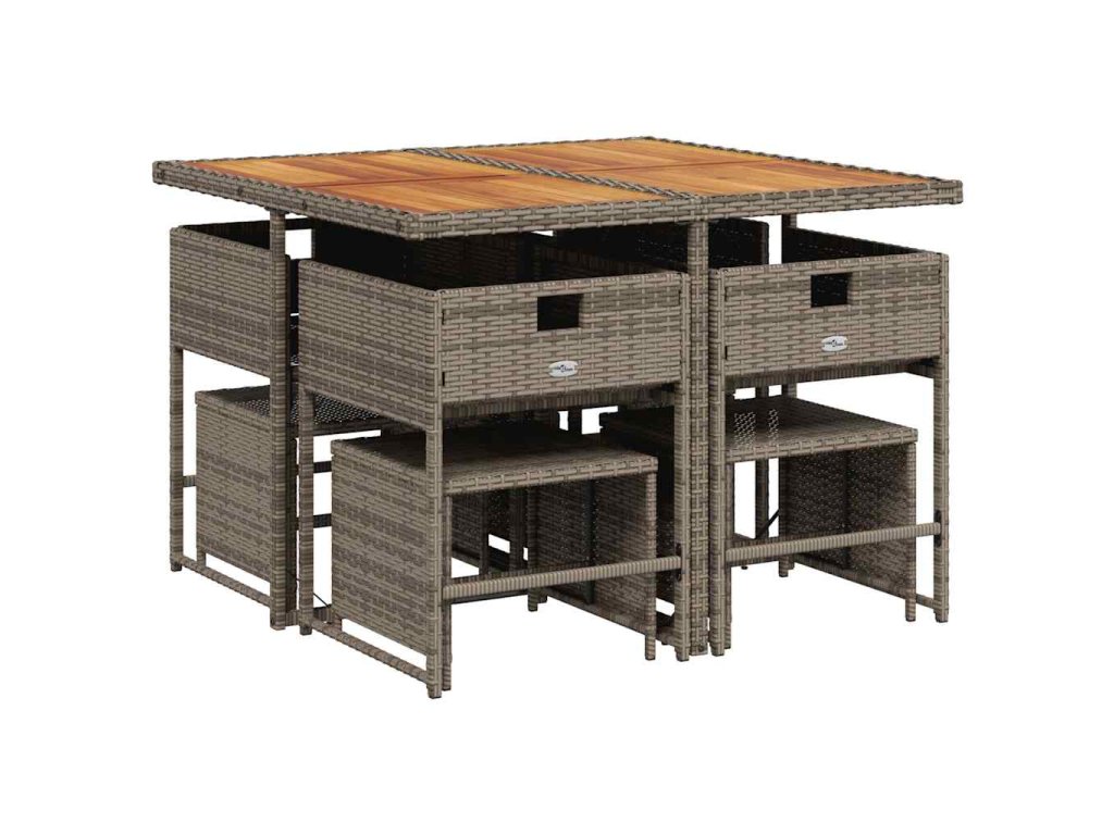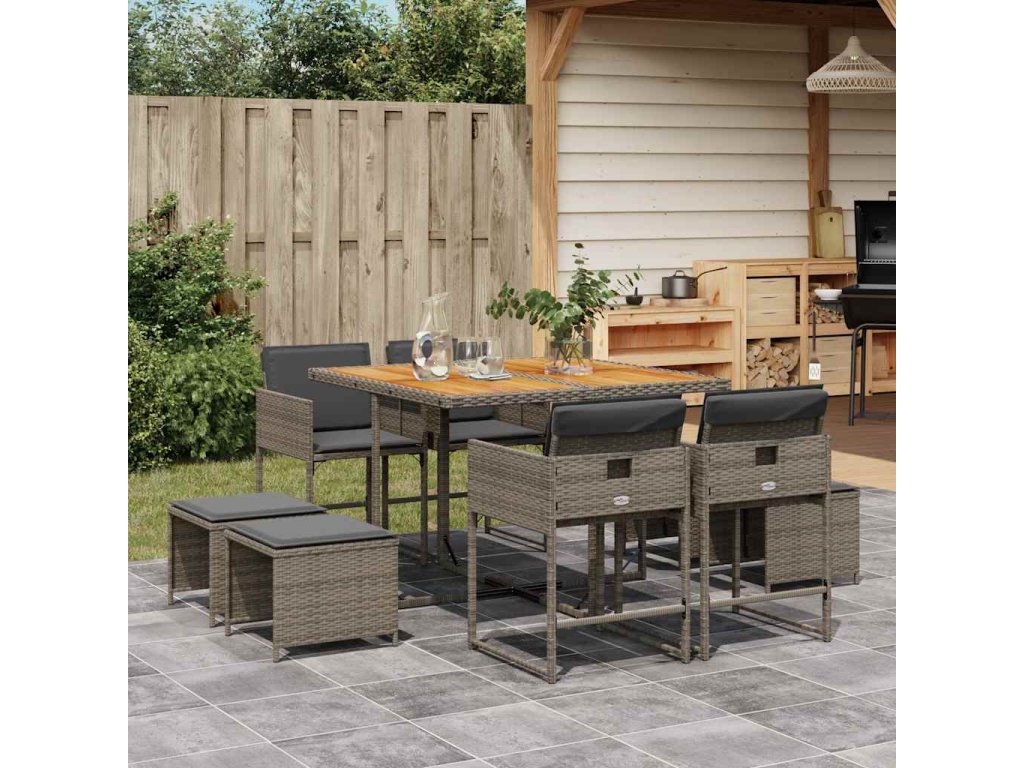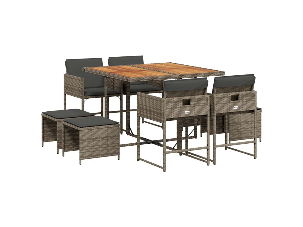 9dílný zahradní jídelní set s poduškami šedý polyratan 3278089