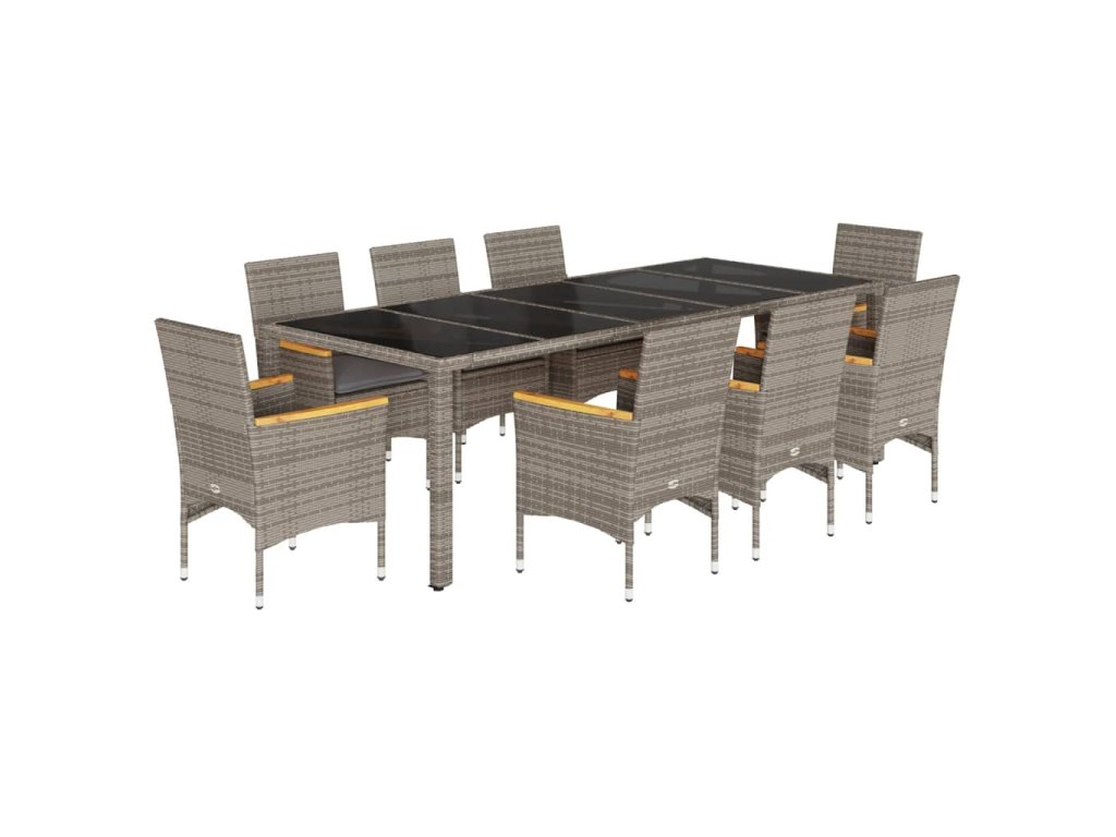 9dílný zahradní jídelní set s poduškami šedý polyratan a sklo 3278735