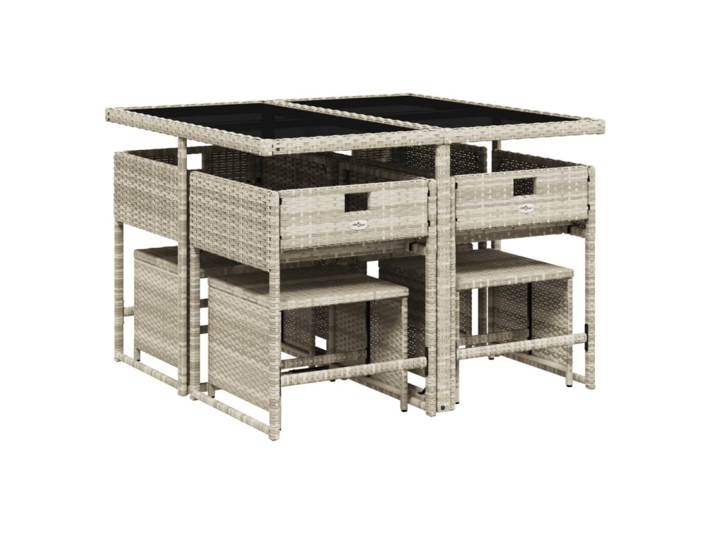 9dílný zahradní jídelní set s poduškami světle šedý polyratan 3211319