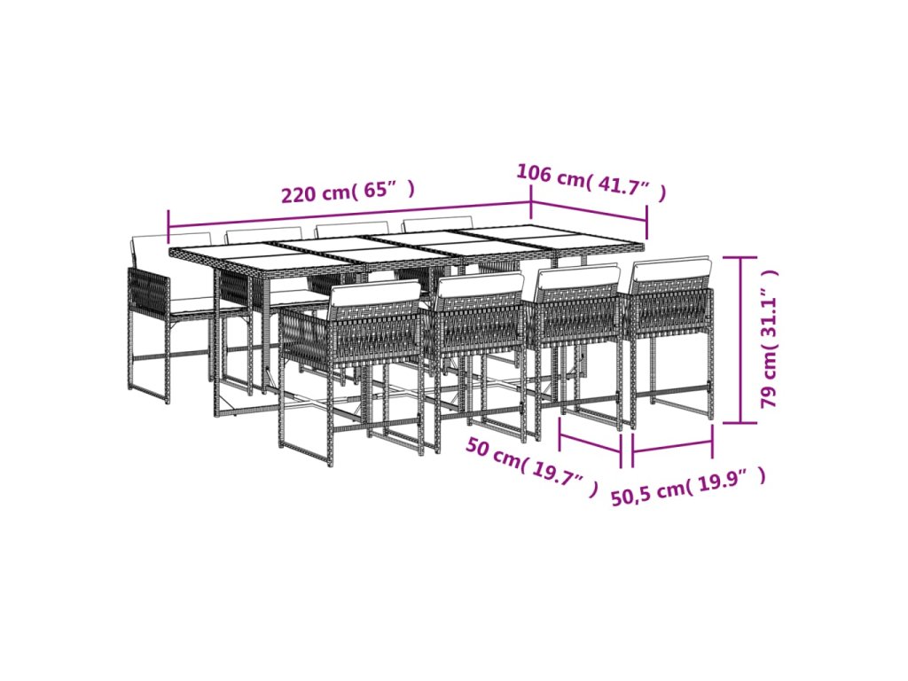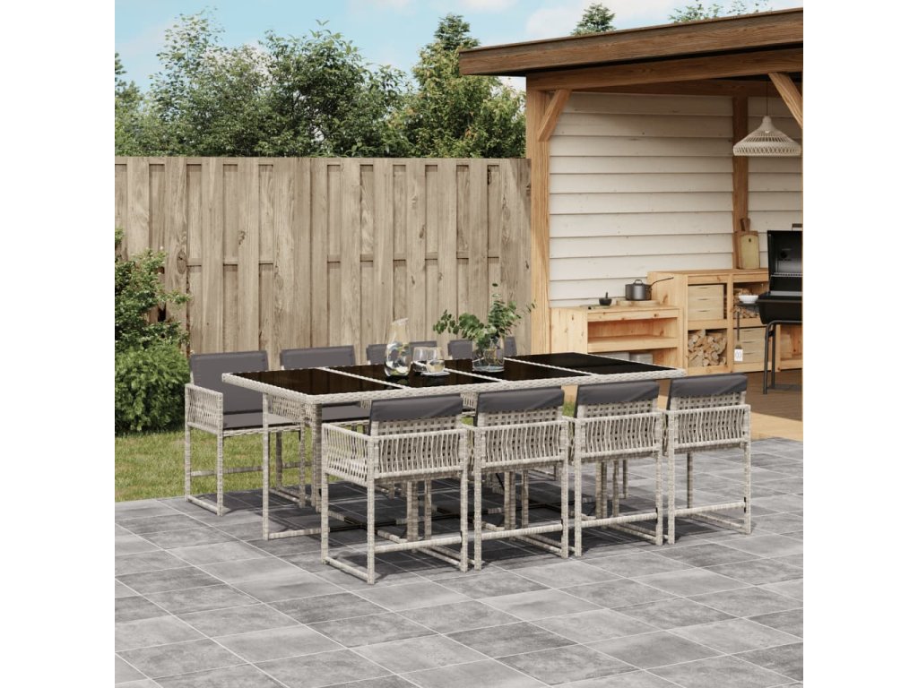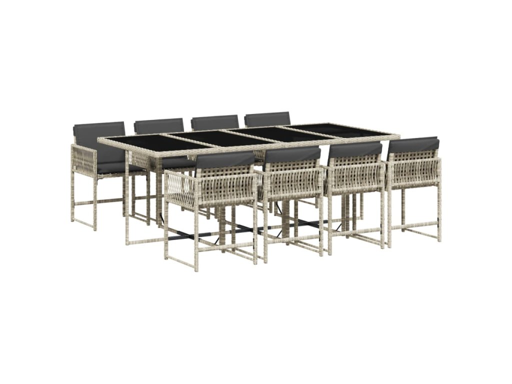 9dílný zahradní jídelní set s poduškami světle šedý polyratan 3211463
