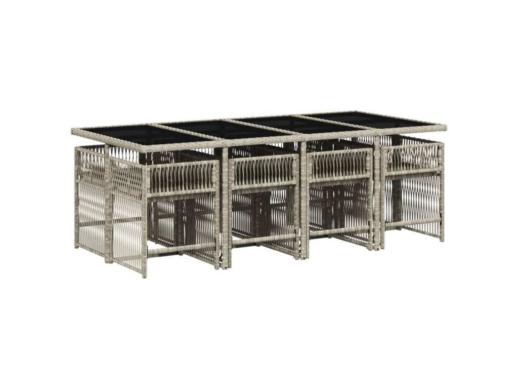 9dílný zahradní jídelní set s poduškami světle šedý polyratan 3211643