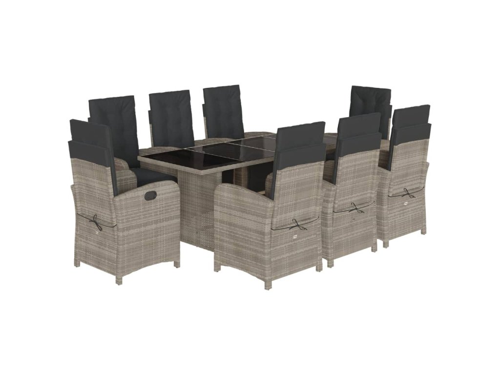 9dílný zahradní jídelní set s poduškami světle šedý polyratan 3212499