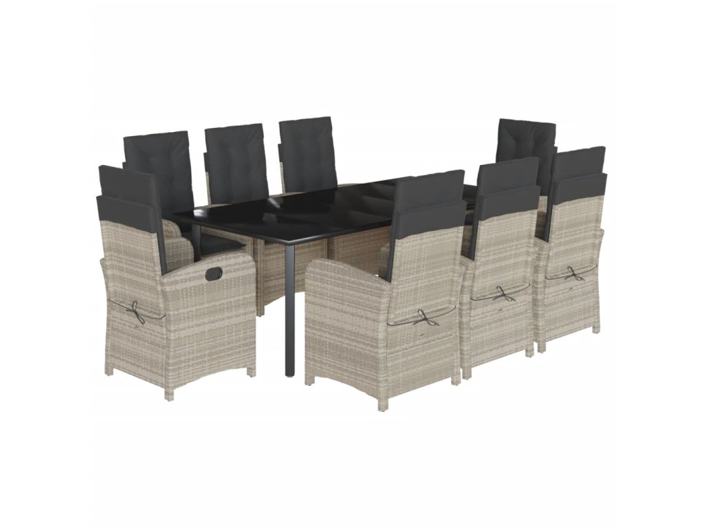 9dílný zahradní jídelní set s poduškami světle šedý polyratan 3212861
