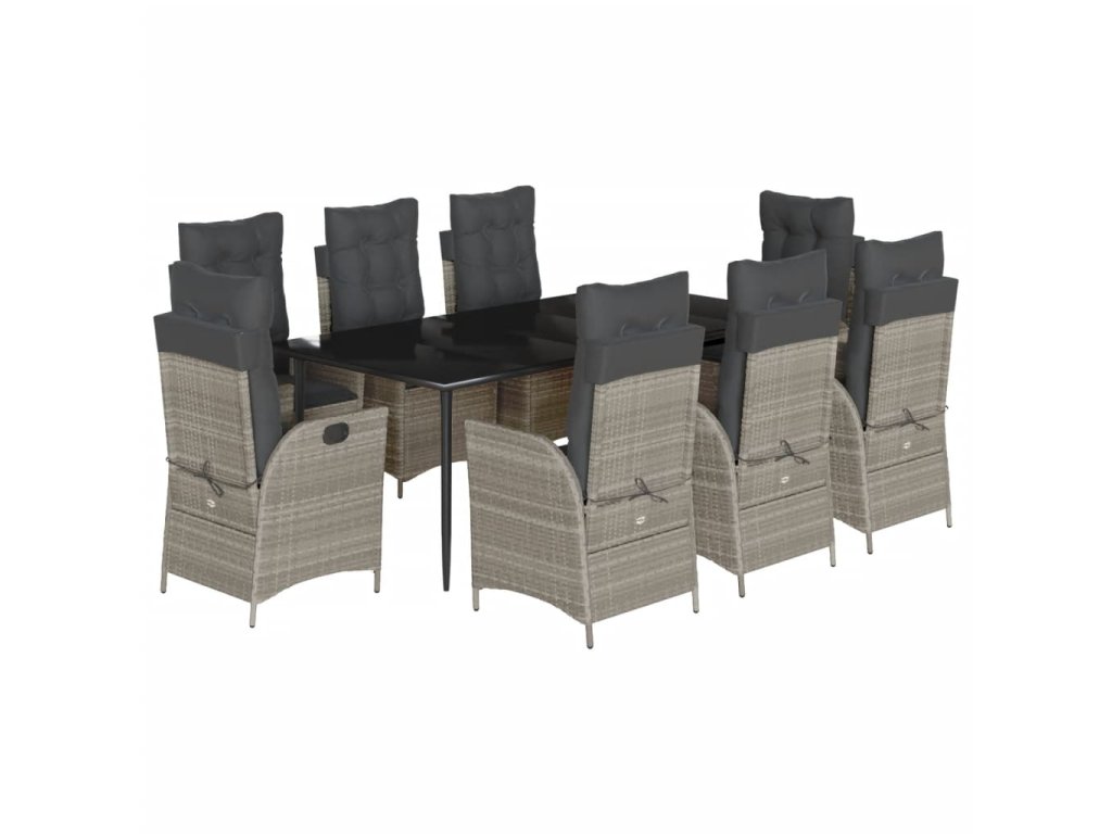 9dílný zahradní jídelní set s poduškami světle šedý polyratan 3213282