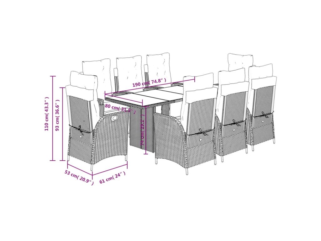 - Skleněná deska stolu: Deska venkovního stolu je zhotovena ze silného a odolného tvrzeného skla, takže ji snadno očistíte vlhkým hadříkem a zároveň do vašeho venkovního prostoru vnese nádech elegance.