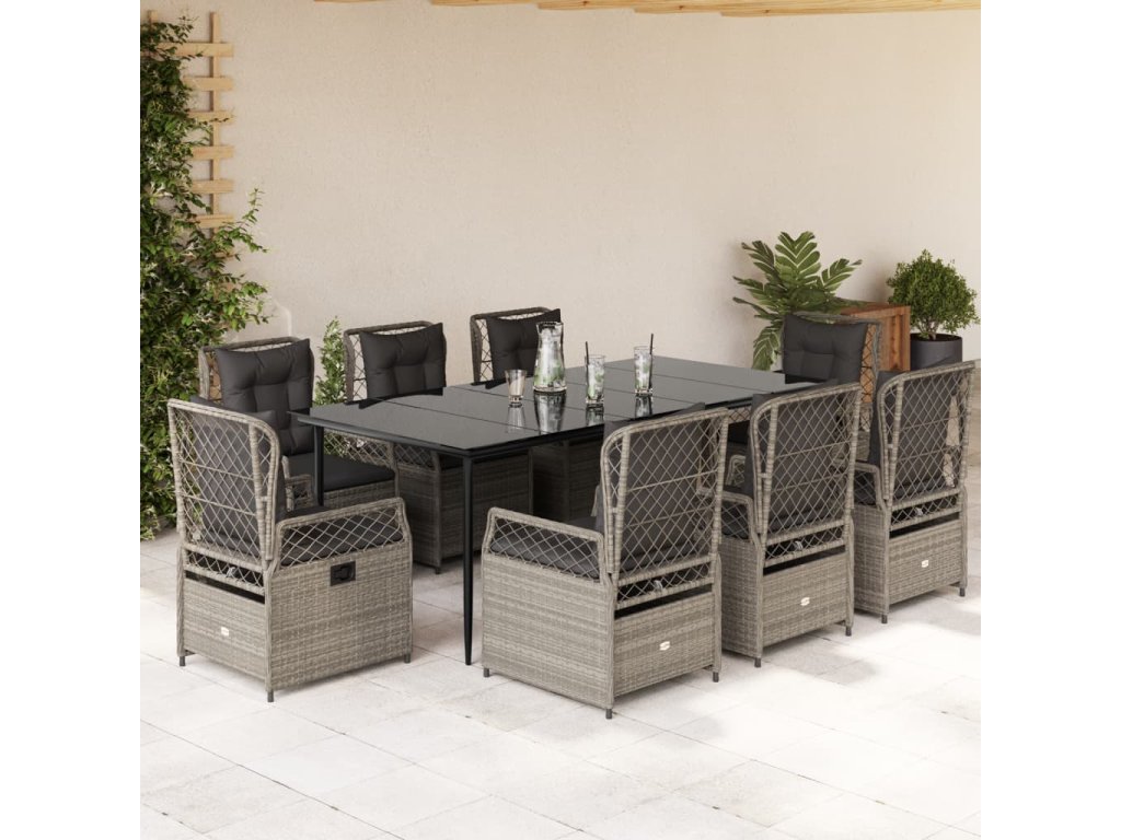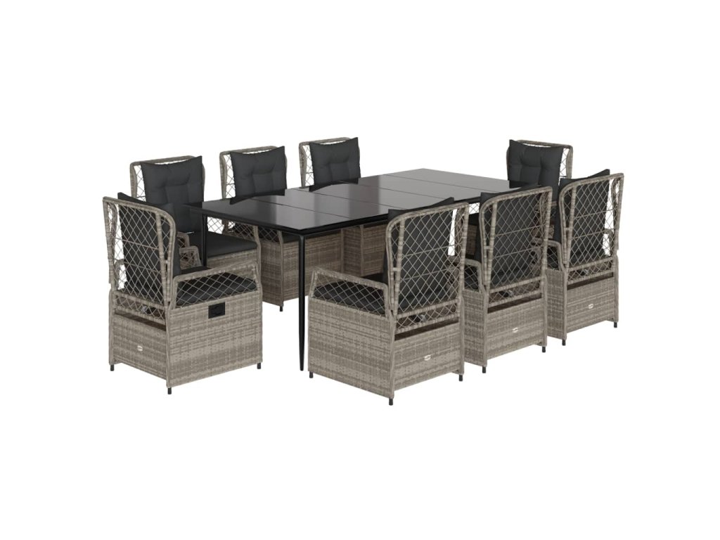 9dílný zahradní jídelní set s poduškami světle šedý polyratan 3263033