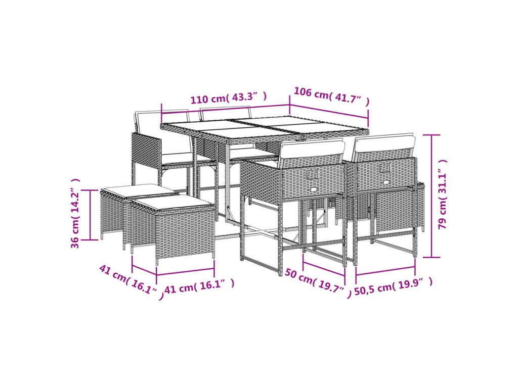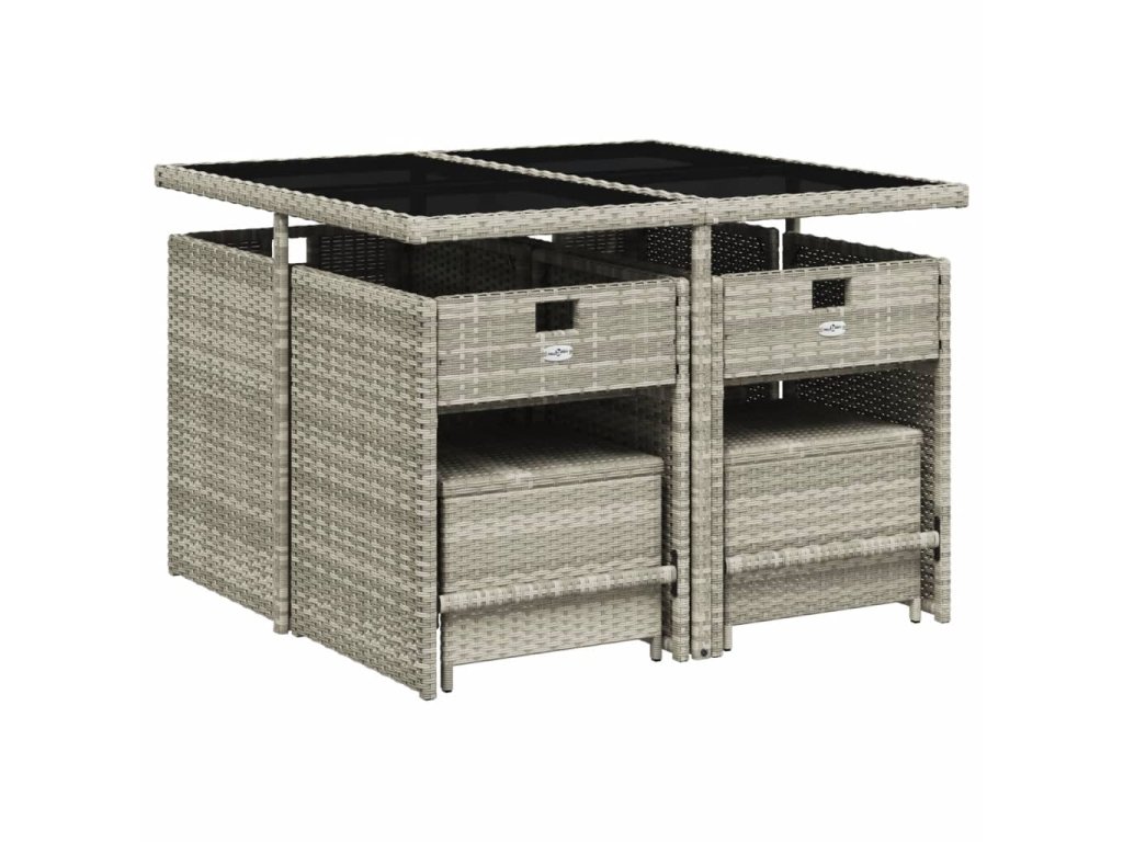 9dílný zahradní jídelní set s poduškami světle šedý polyratan 3277906