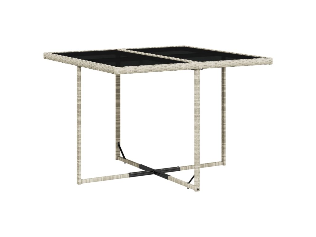 - Stabilní a snadno čistitelná stolní deska: Tento zahradní stůl má desku z tvrzeného skla, která je stabilní, odolná a snadno se čistí vlhkým hadříkem.