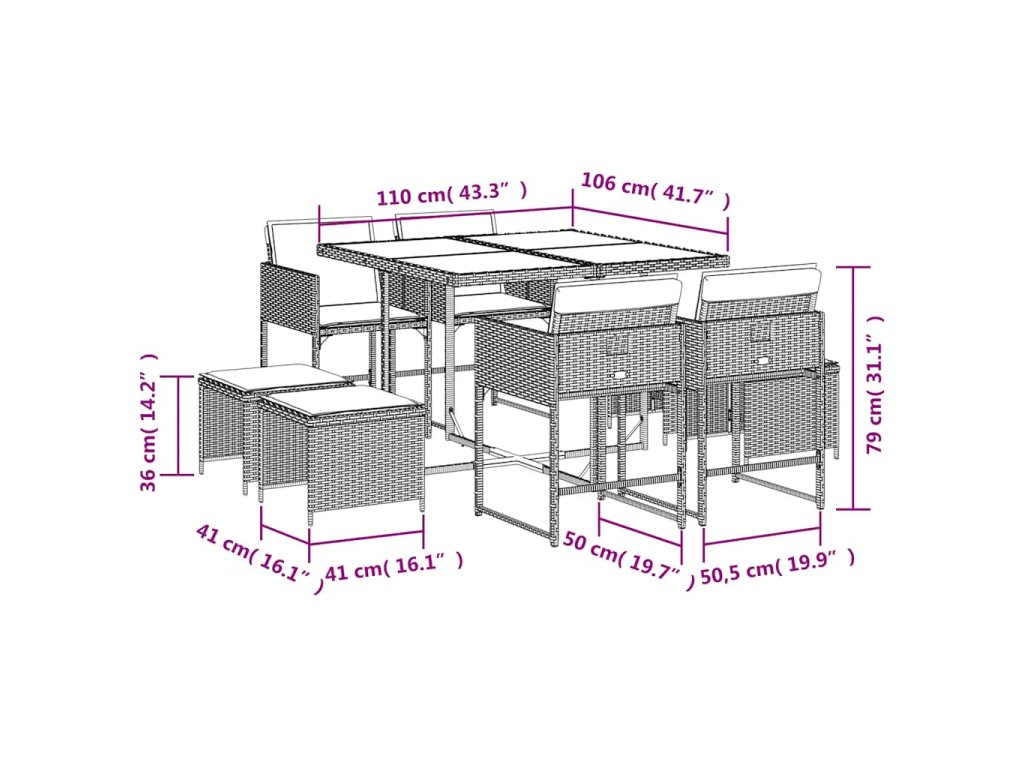 9dílný zahradní jídelní set s poduškami světle šedý polyratan 3278086