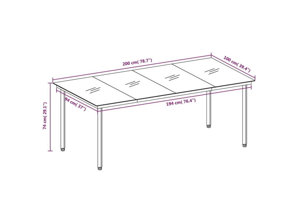 - Rozměry: 200 x 100 x 74 cm (D x Š x V)