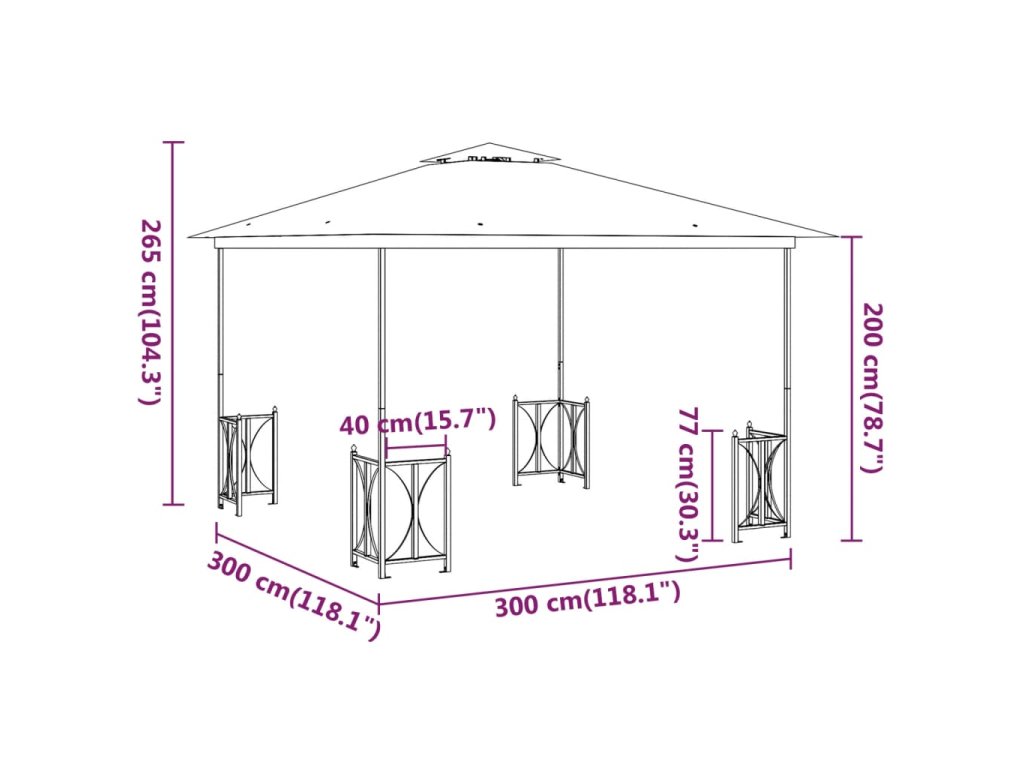 - Elegantní design: Každou nohu doplňují dva dekorativní panely, které altánu přidávají na kráse.