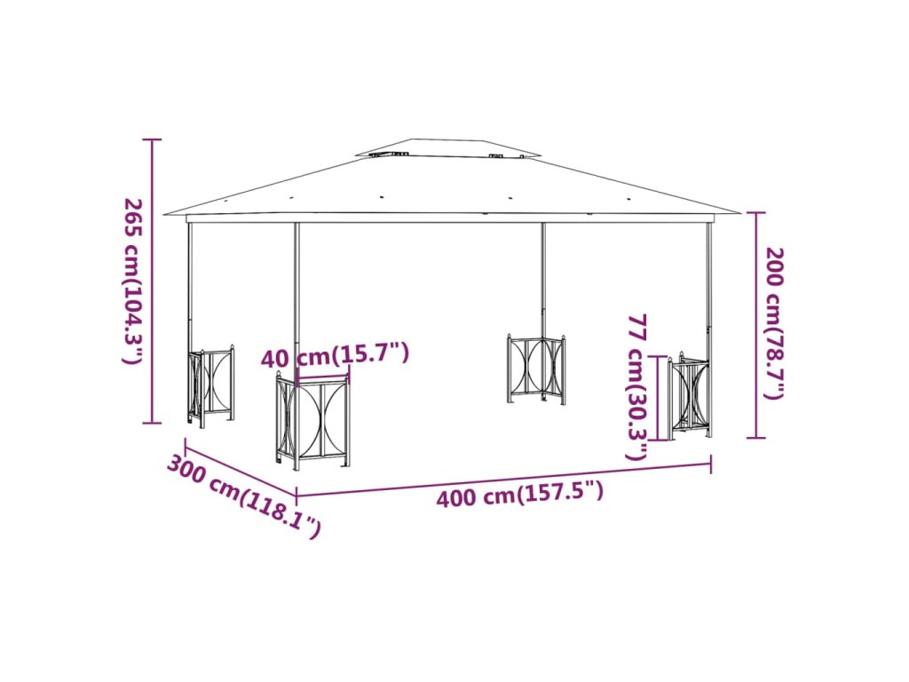 - Elegantní design: Každou nohu doplňují dva dekorativní panely, které altánu přidávají na kráse.