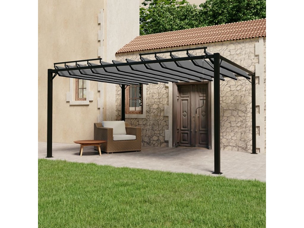 Altán s lamelovou střechou 3 x 4 m antracitová tkanina a hliník 313929