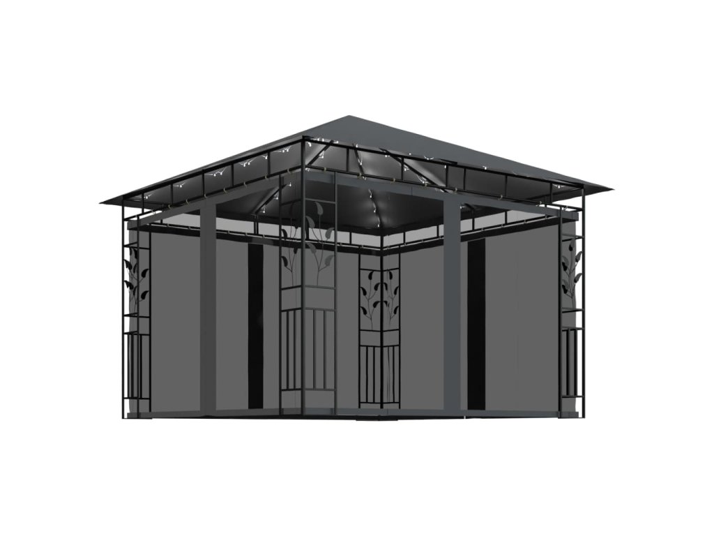 Altán s moskytiérou a světelné LED řetězy 3x3x2,73m antracitový 3070316
