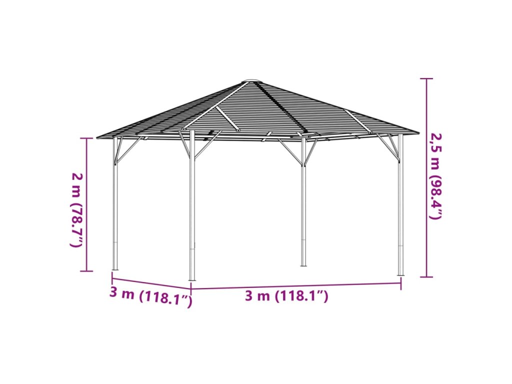 Altán se střechou 3 x 3 m antracitový 315247