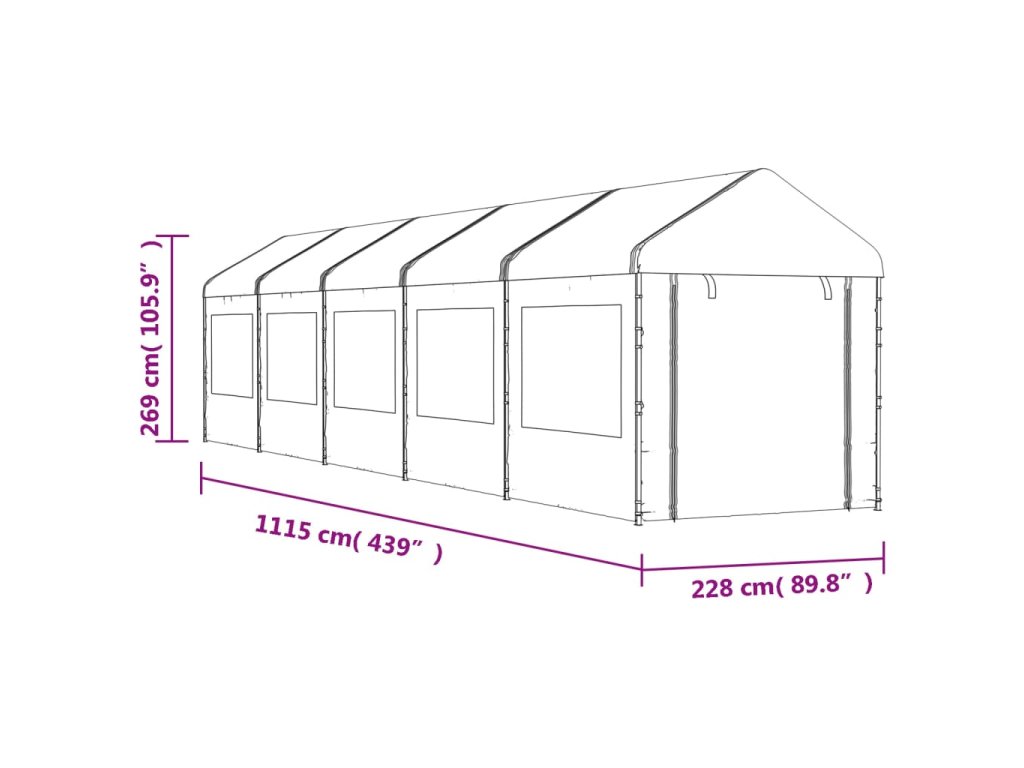 Altán se střechou bílý 11,15 x 2,28 x 2,69 m polyethylen 3155481