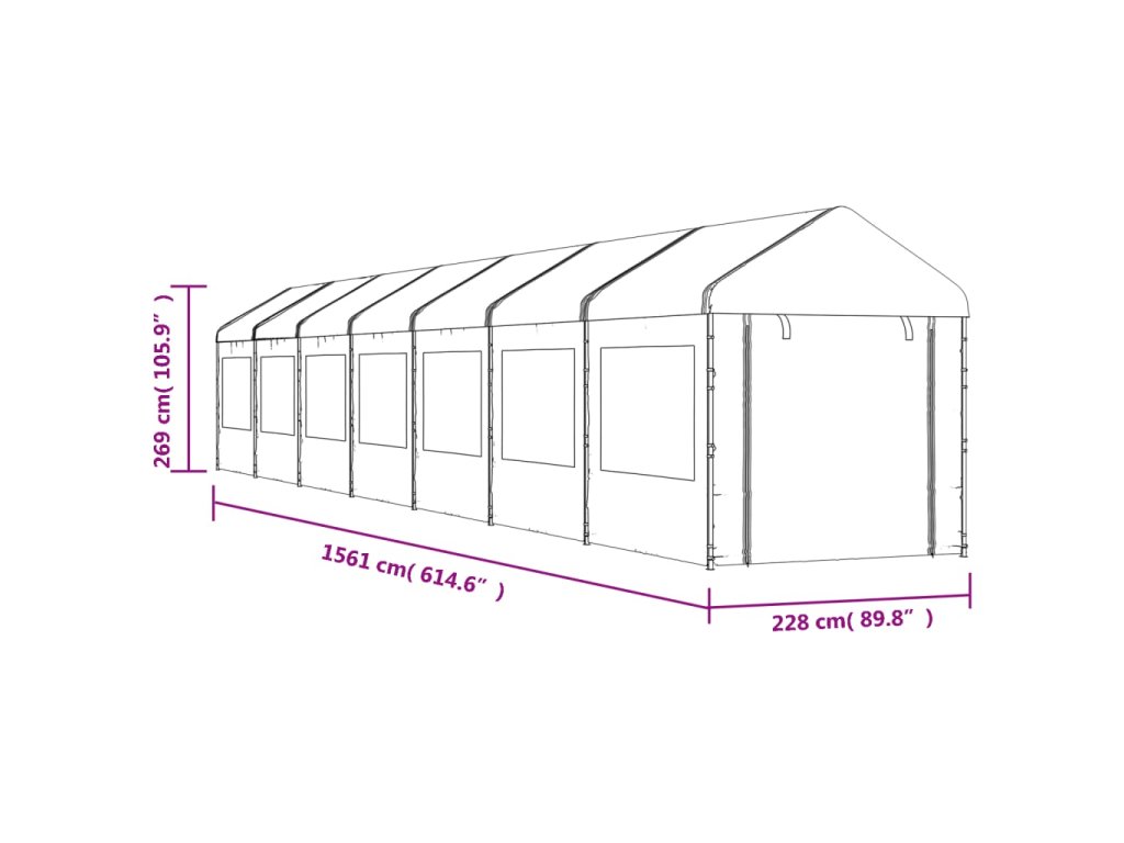 Altán se střechou bílý 15,61 x 2,28 x 2,69 m polyethylen 3155483