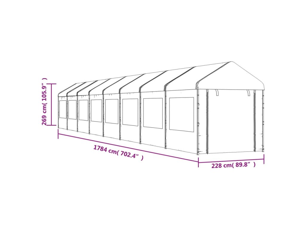 Altán se střechou bílý 17,84 x 2,28 x 2,69 m polyethylen 3155484