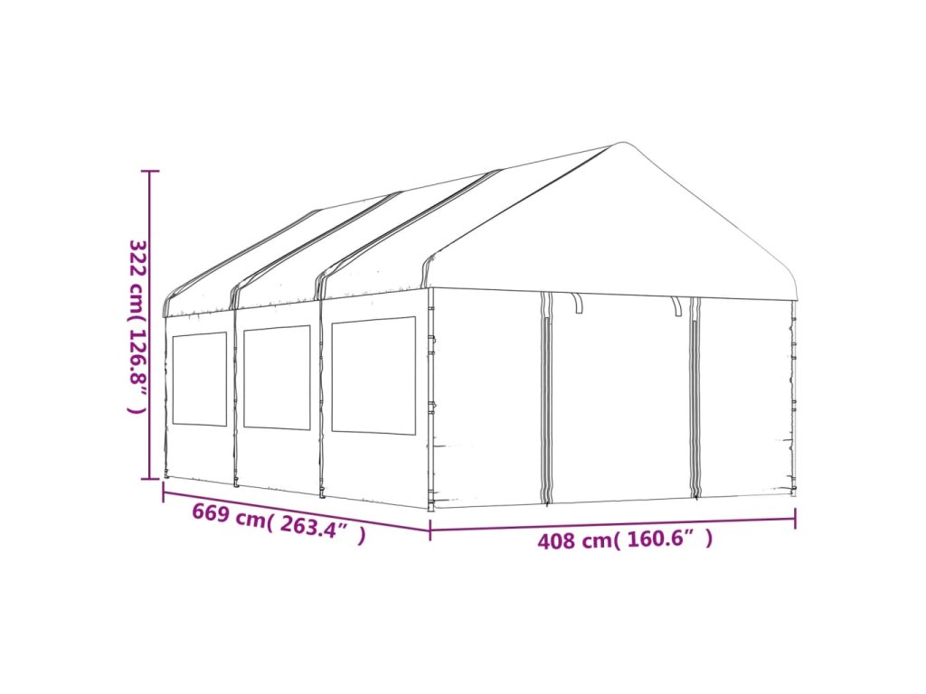 Altán se střechou bílý 6,69 x 4,08 x 3,22 m polyethylen 3155487