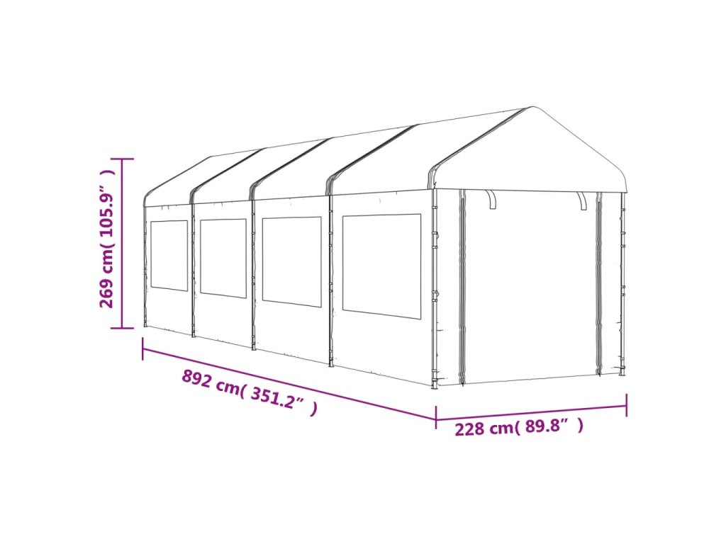 Altán se střechou bílý 8,92 x 2,28 x 2,69 m polyethylen 3155480