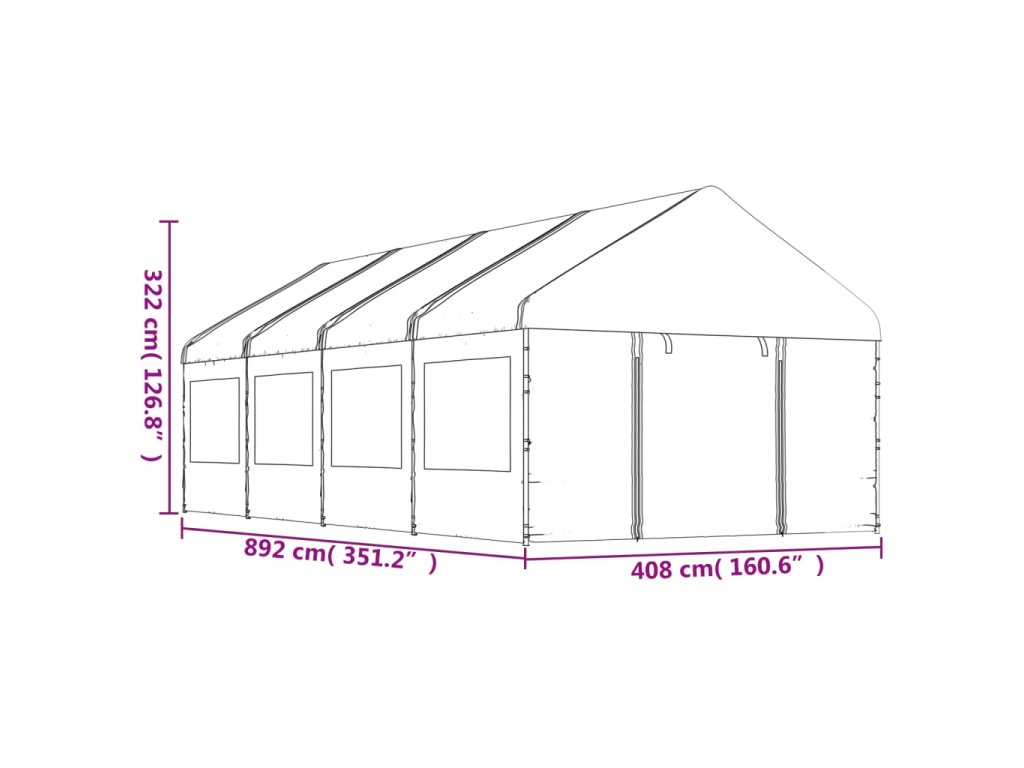 Altán se střechou bílý 8,92 x 4,08 x 3,22 m polyethylen 3155488