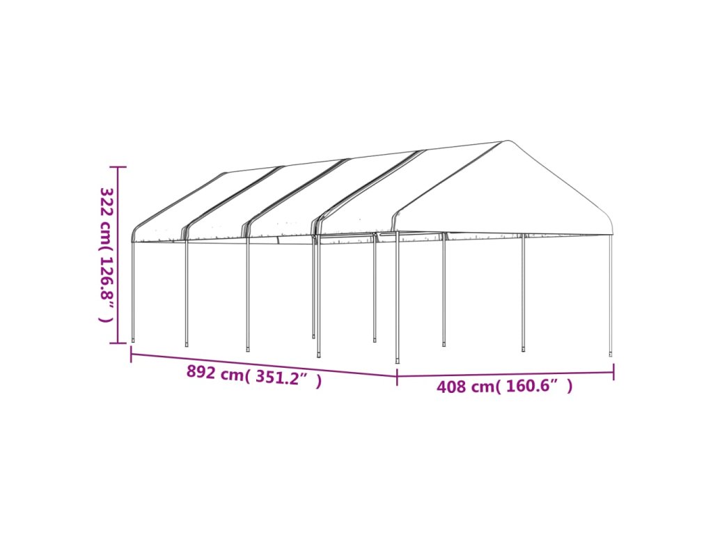 Altán se střechou bílý 8,92 x 4,08 x 3,22 m polyethylen 3155512