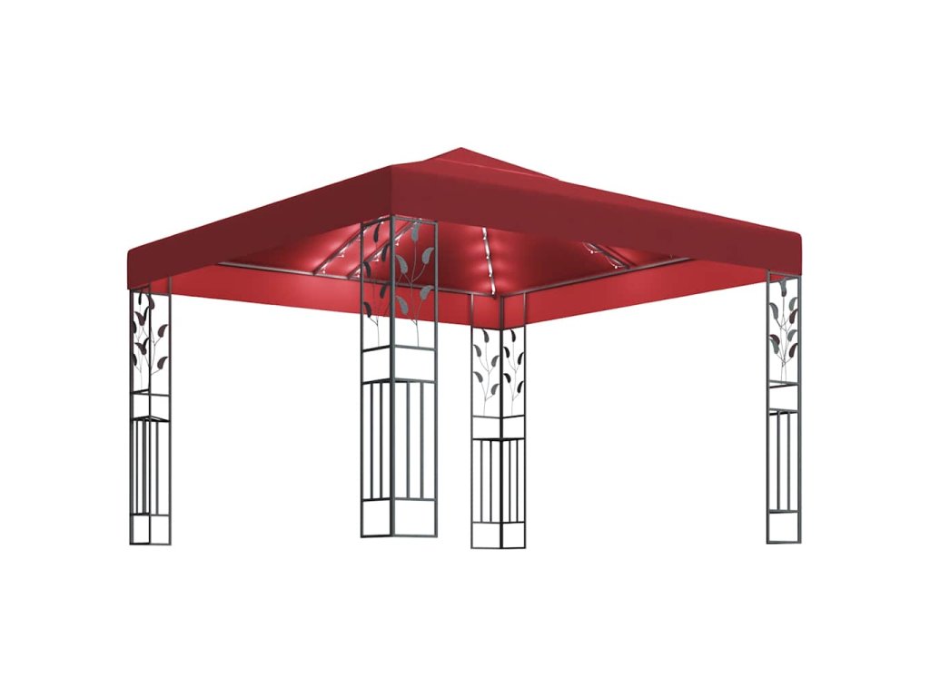 Altán se světelnými LED řetězy 3 x 3 m vínový 3070297