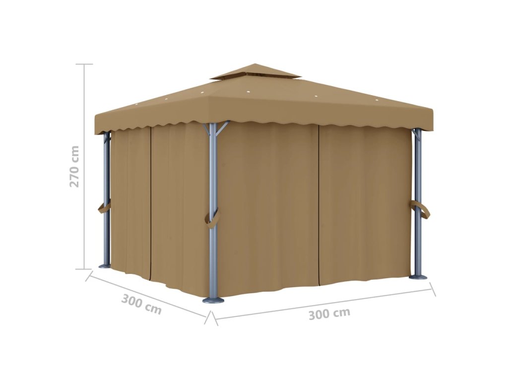 Altán se závěsy 3 x 3 m taupe hliník 3068557