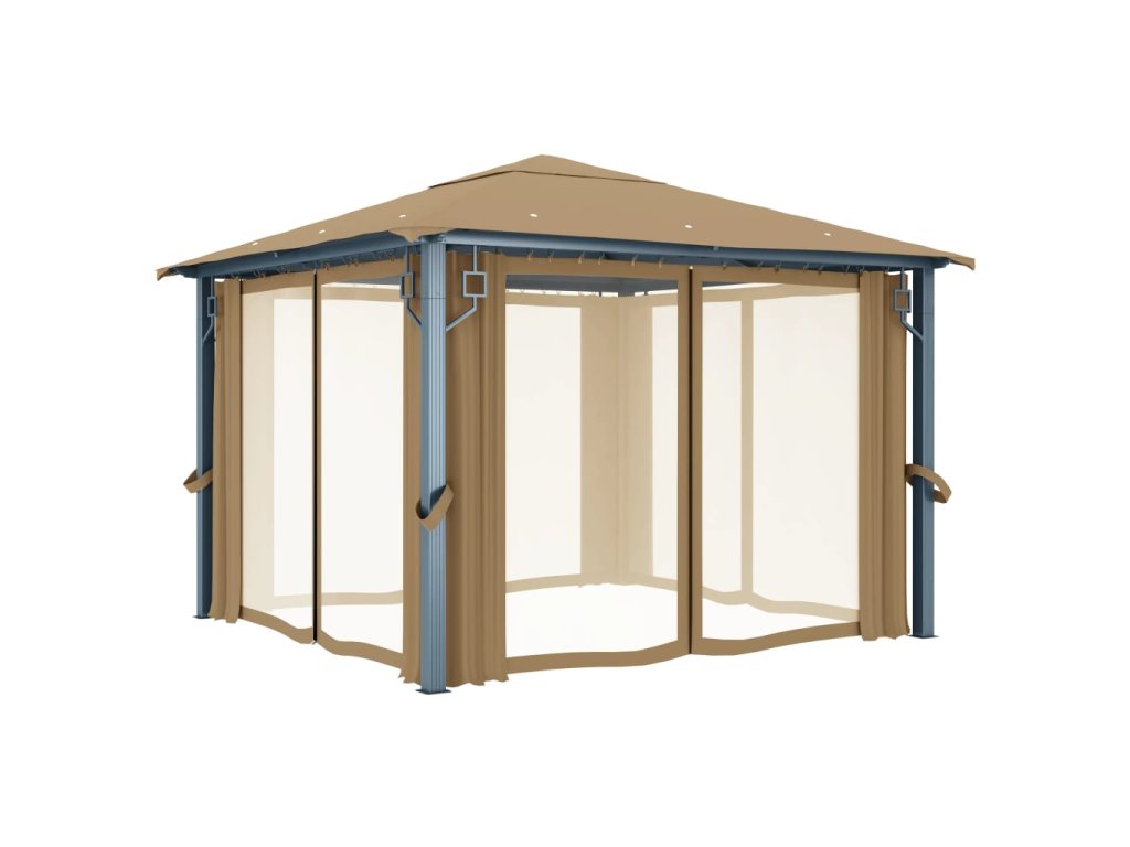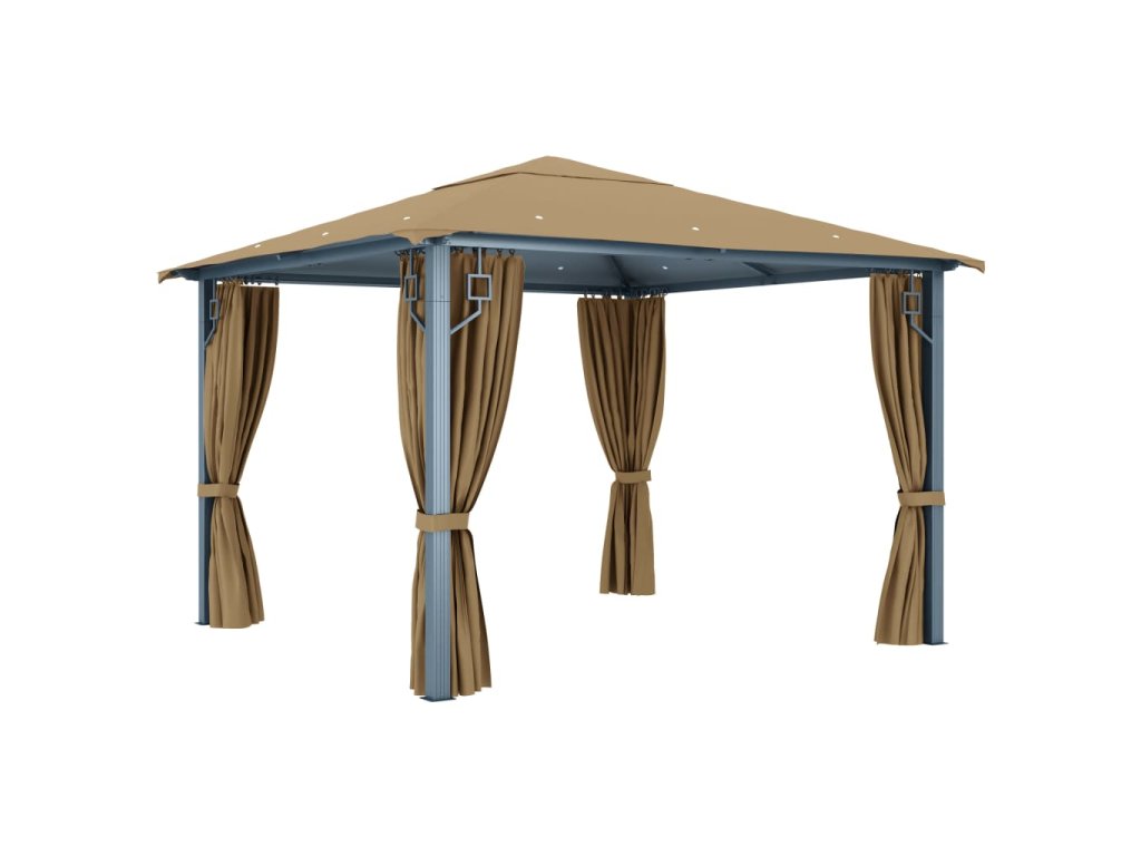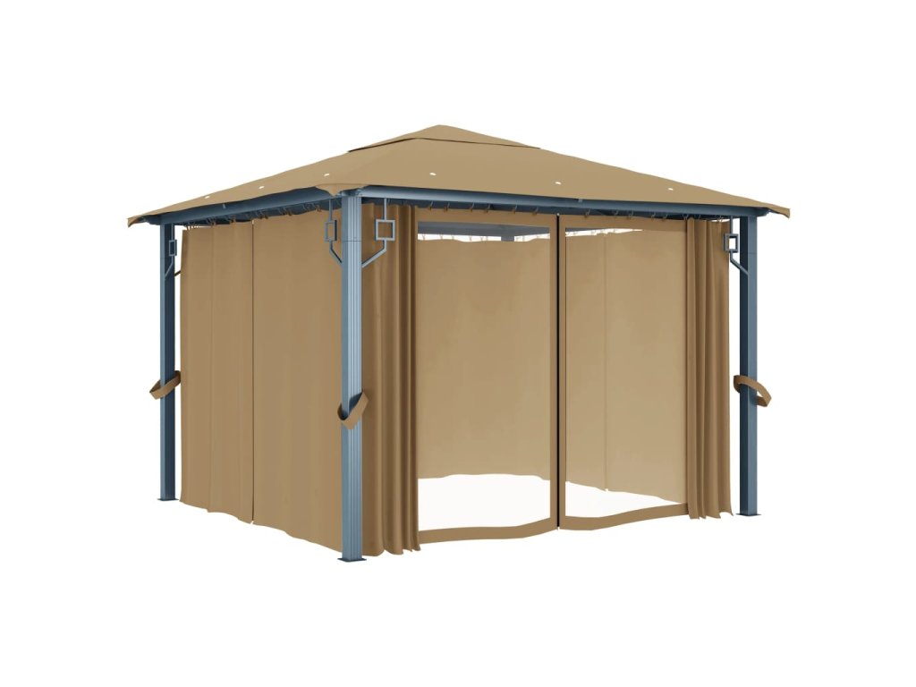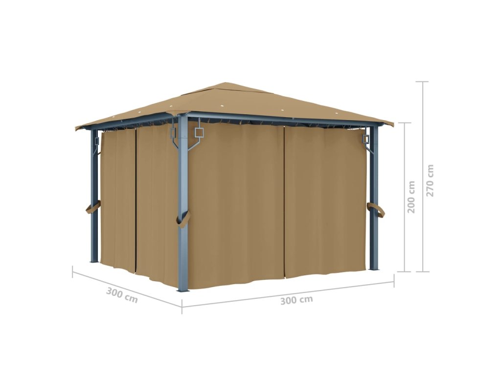 Altán se závěsy 300 x 300 cm taupe hliník 313893