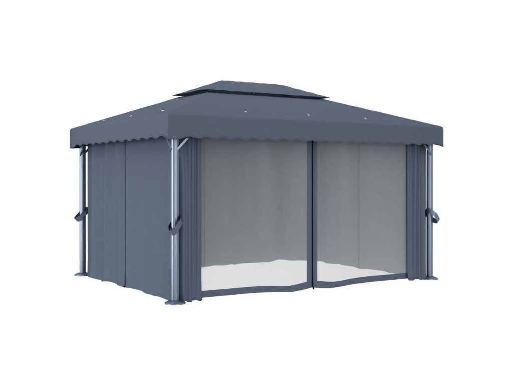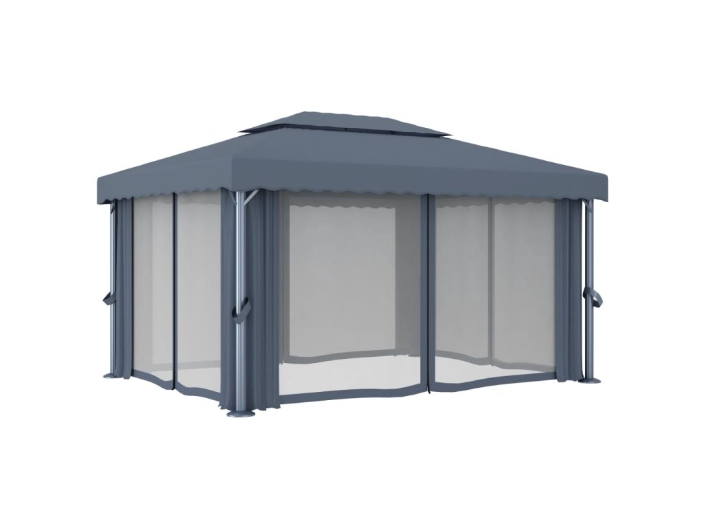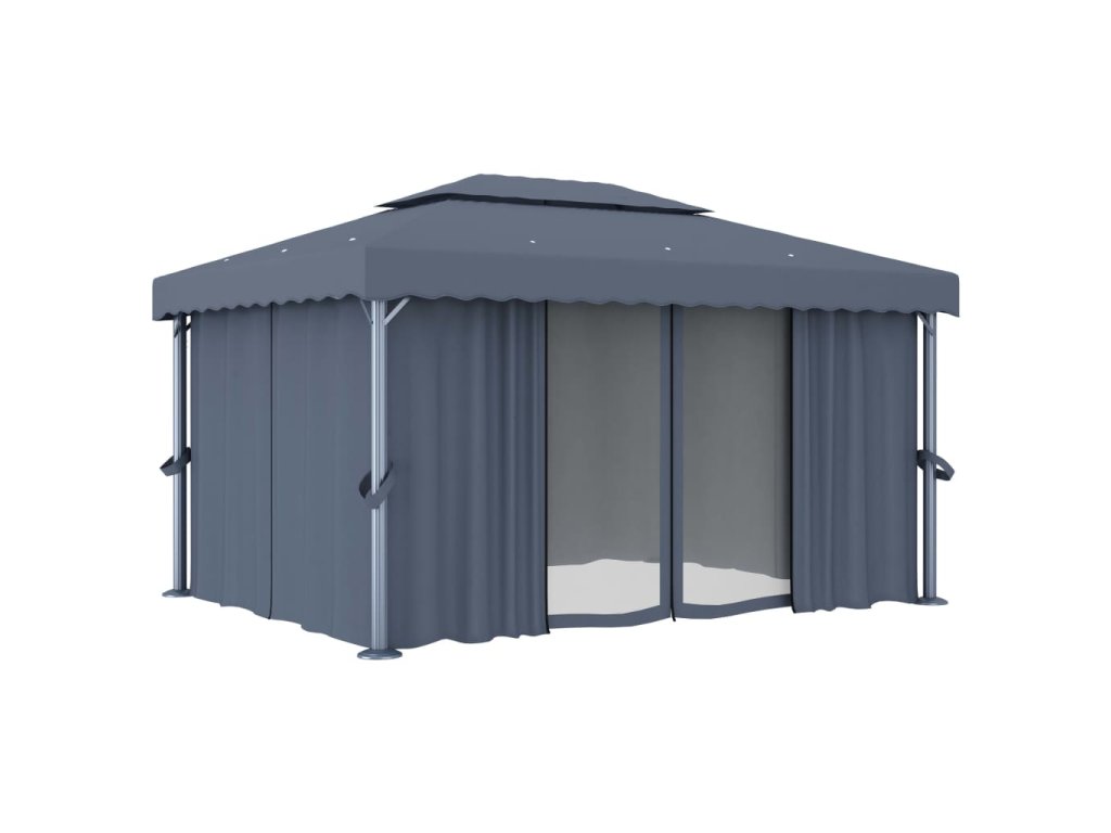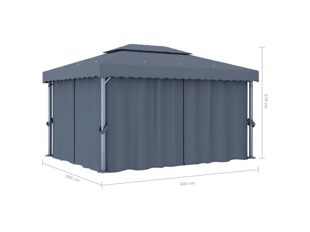 Altán se závěsy 4 x 3 m antracitový hliník 3053376