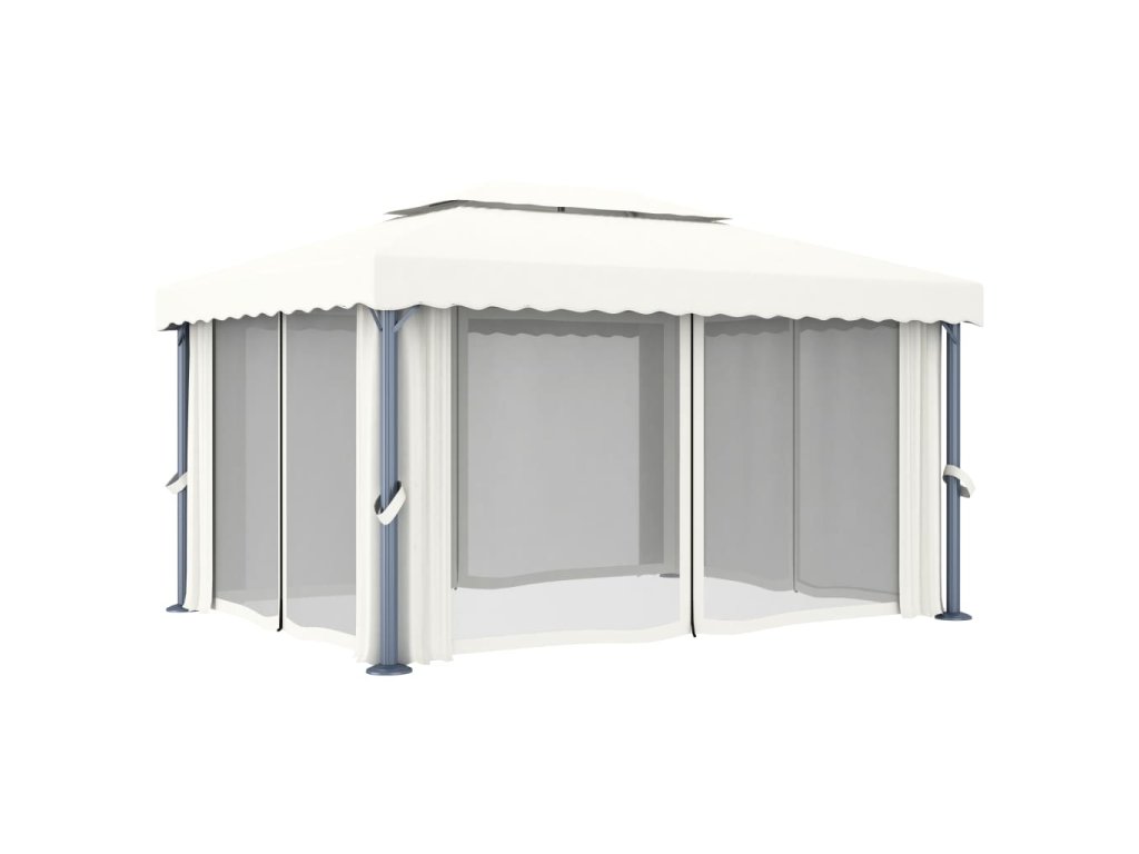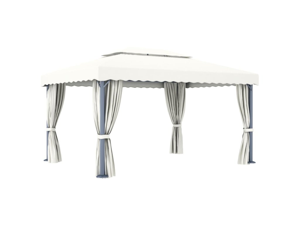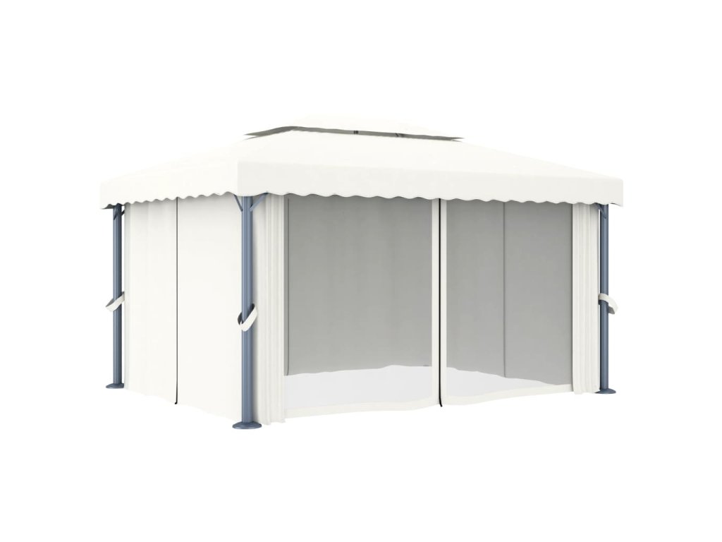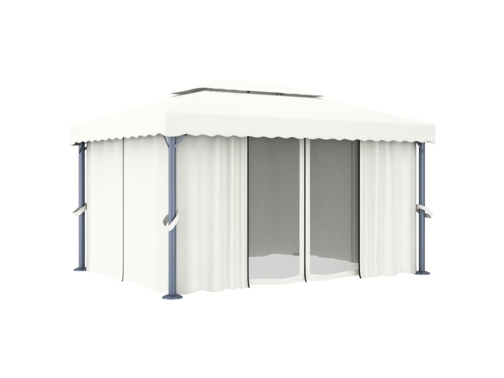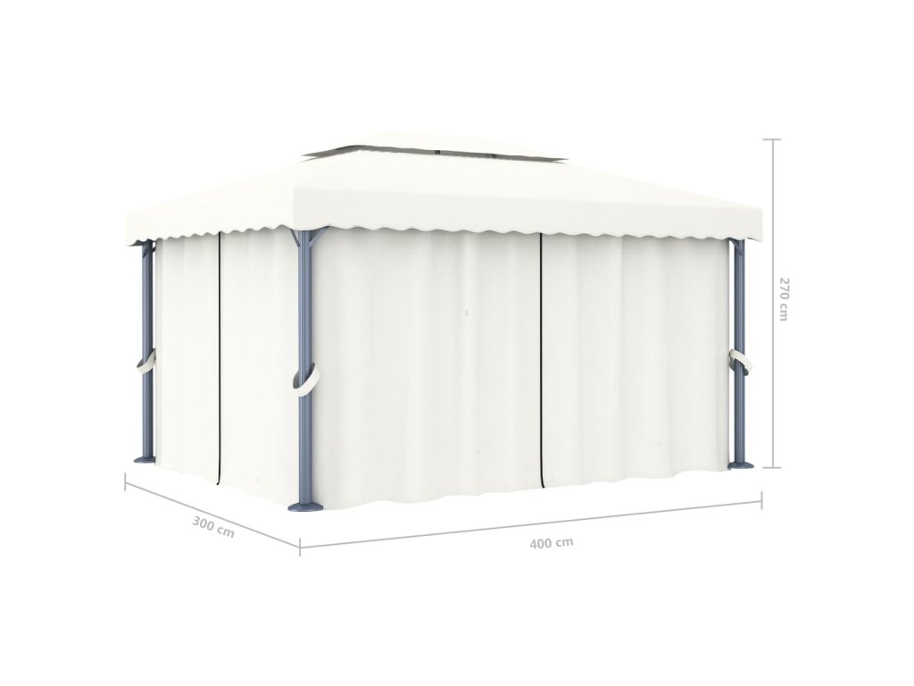 Altán se závěsy 4 x 3 m krémově bílý hliník 3053375